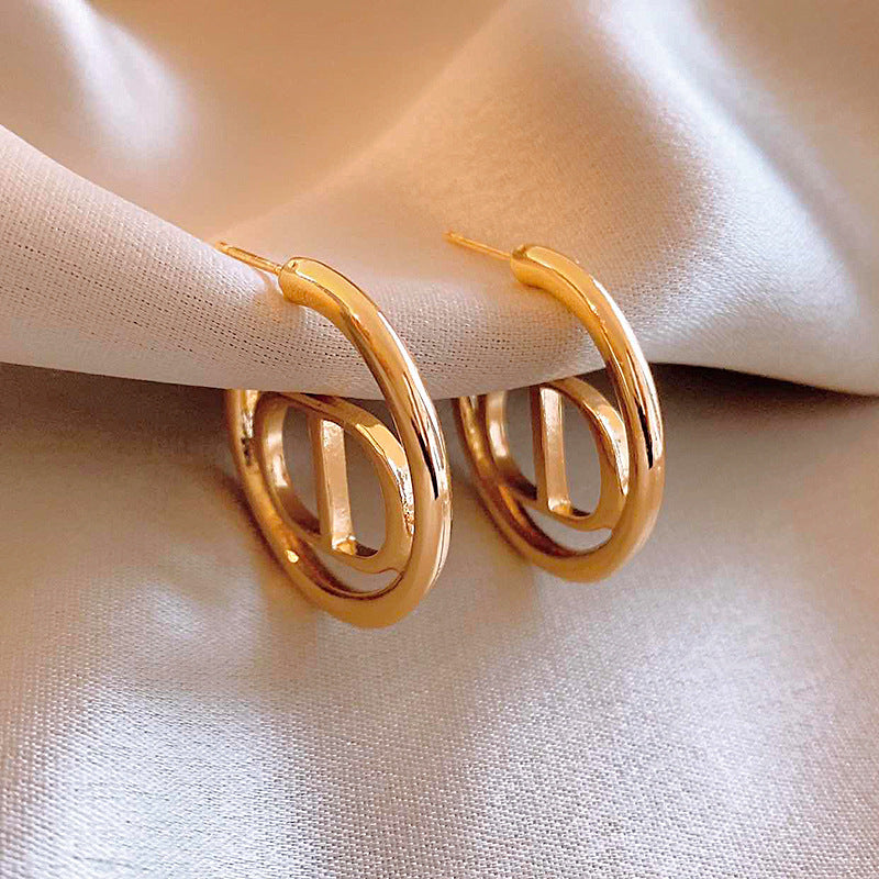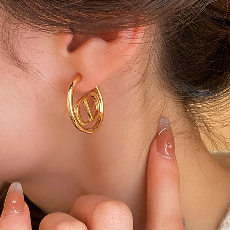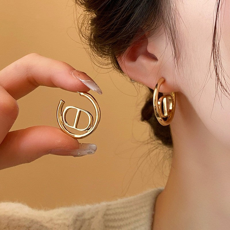 18K Gold-plated Vintage Circle C-Shaped Design Earrings