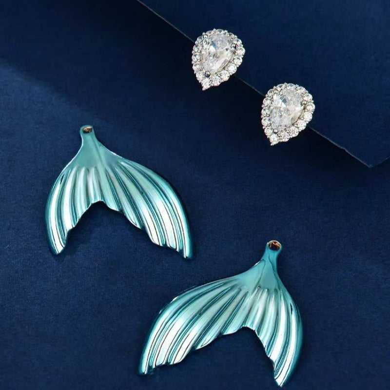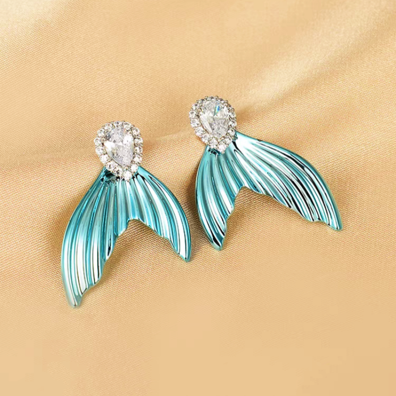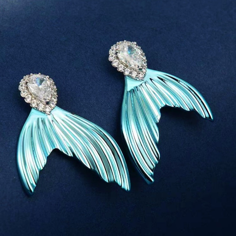 18K Gold-plated Zircon Fishtail Water Drop Earrings