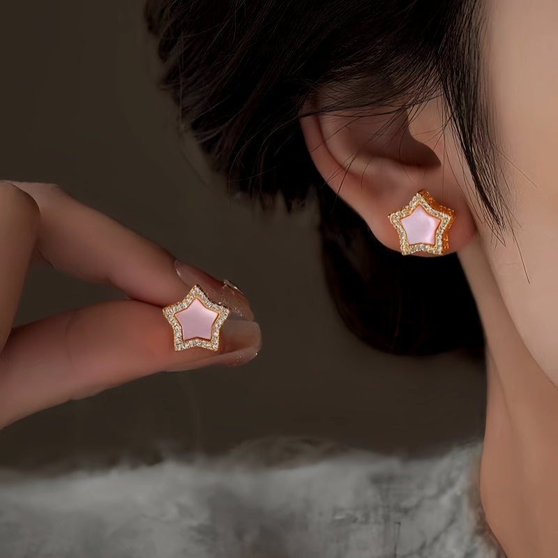 18K Gold-Plated Zircon Pink Diamond Star Stud Earrings