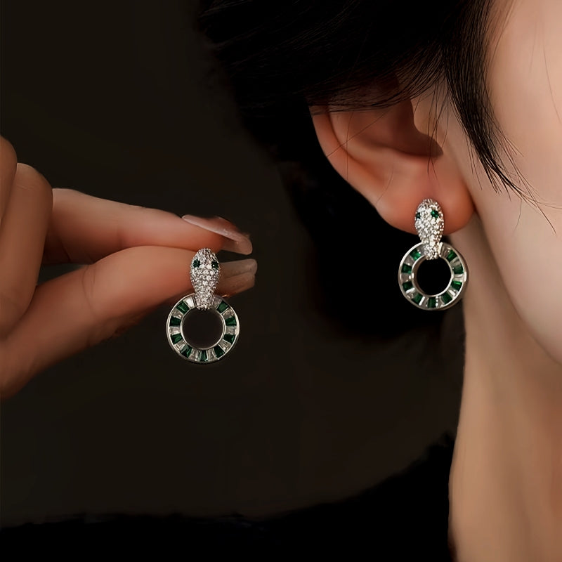 18K Gold-Plated Zircon Snake Earrings And Necklace Set
