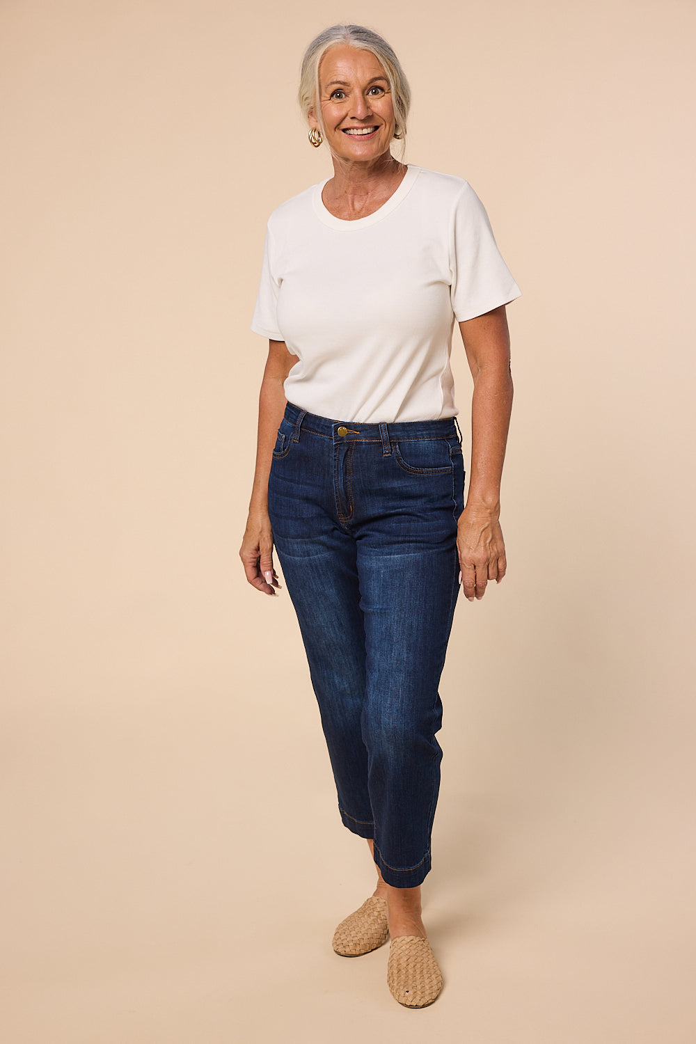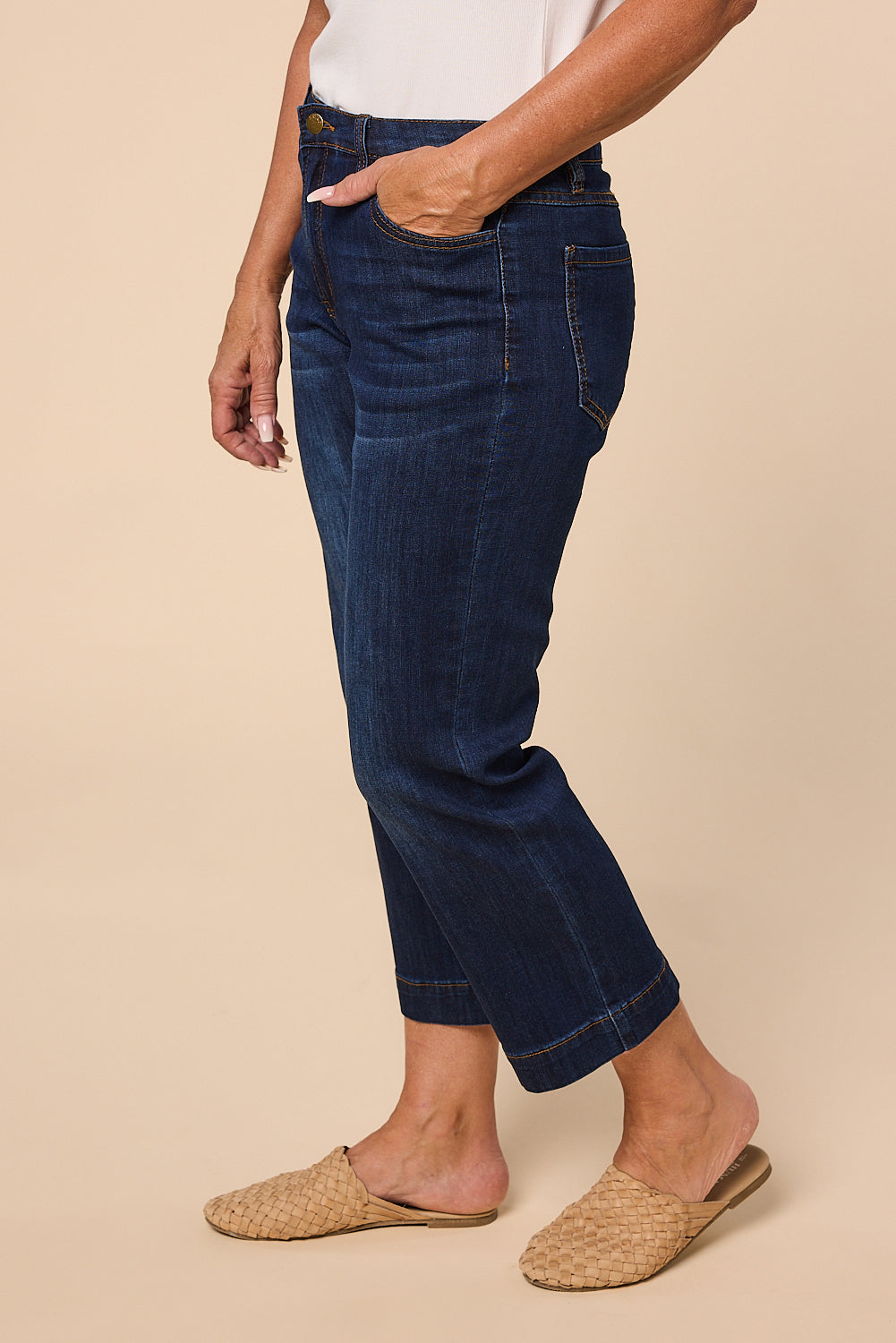 Adrift Denim Cropped Straight Leg Jeans in Dark Wash