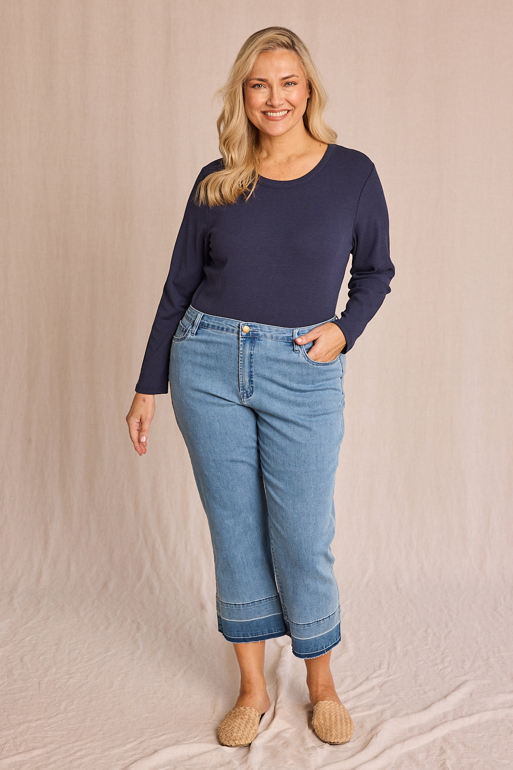 Adrift Denim Cropped Straight Leg Jeans in Light Wash