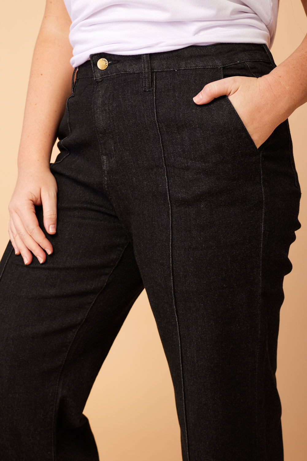 - Tucked stitch embellishment in the centre of the leg front and back