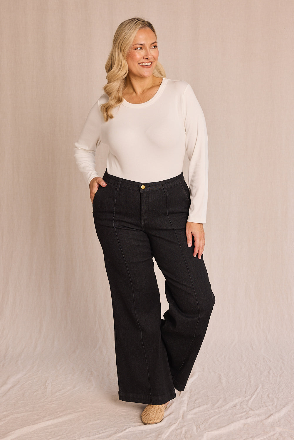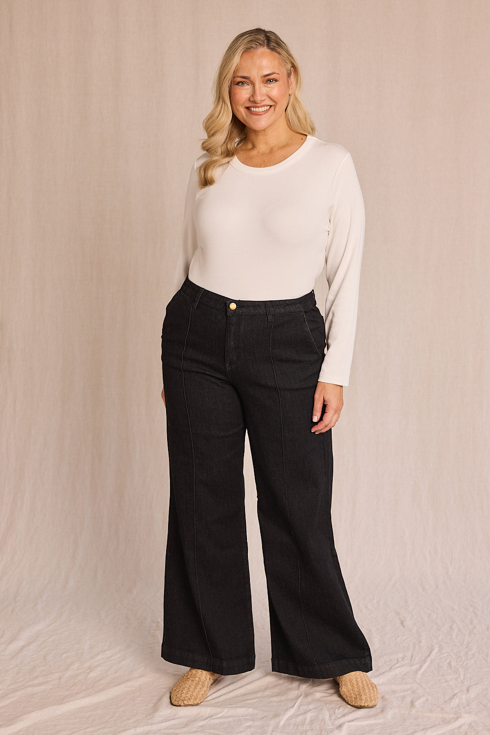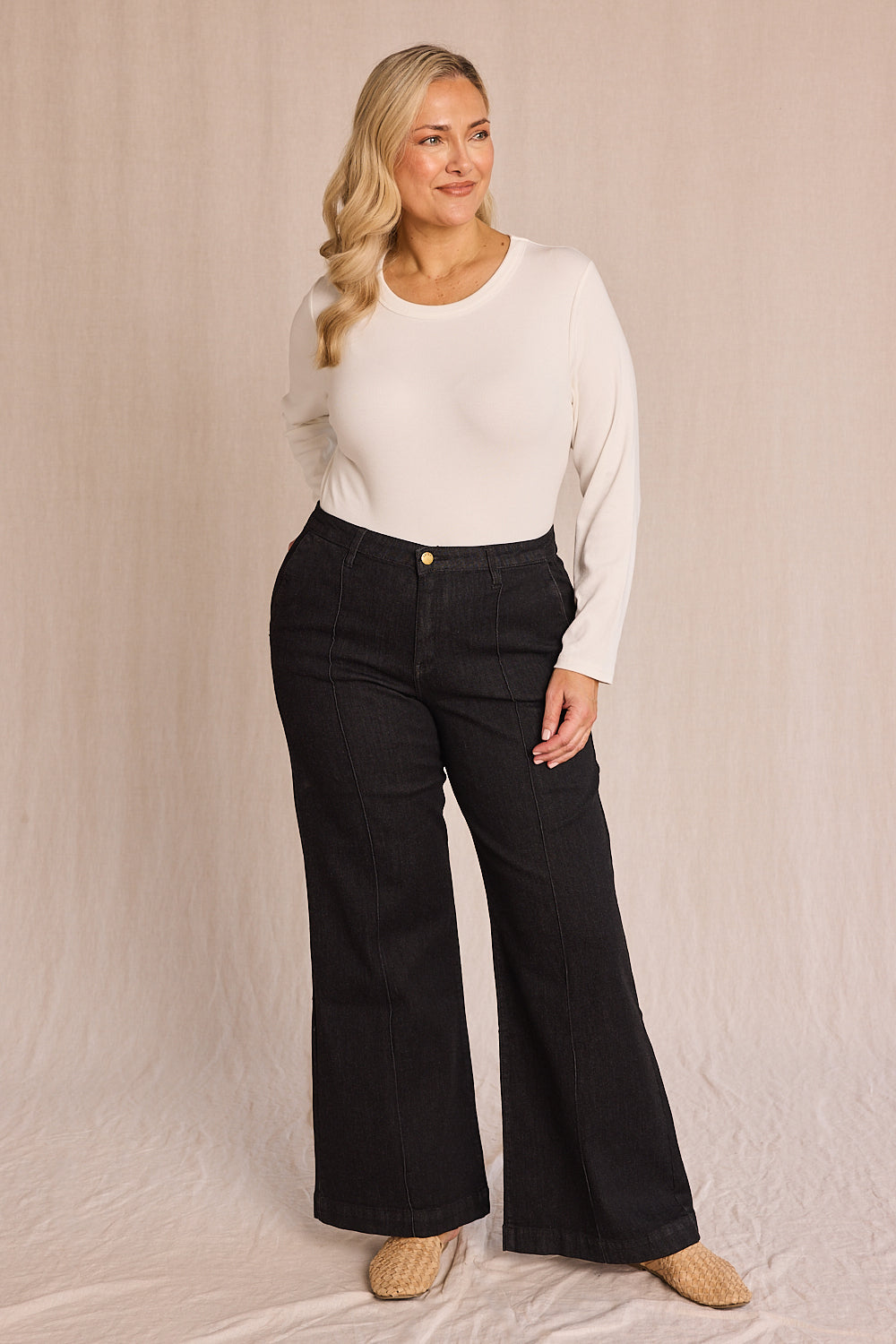 - Classic wide-leg jeans
