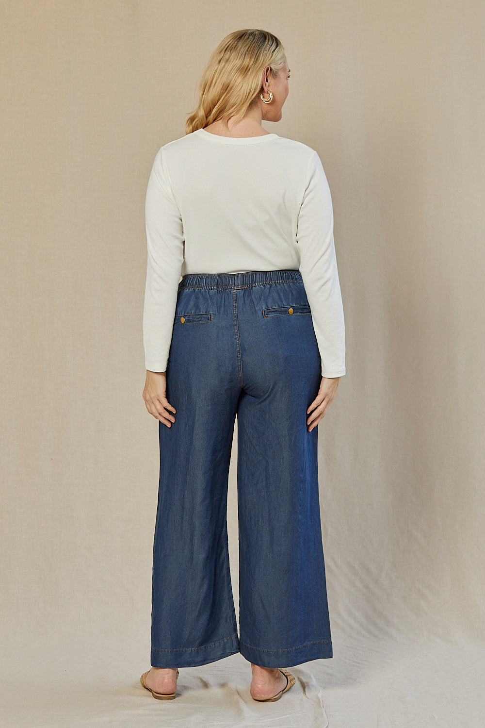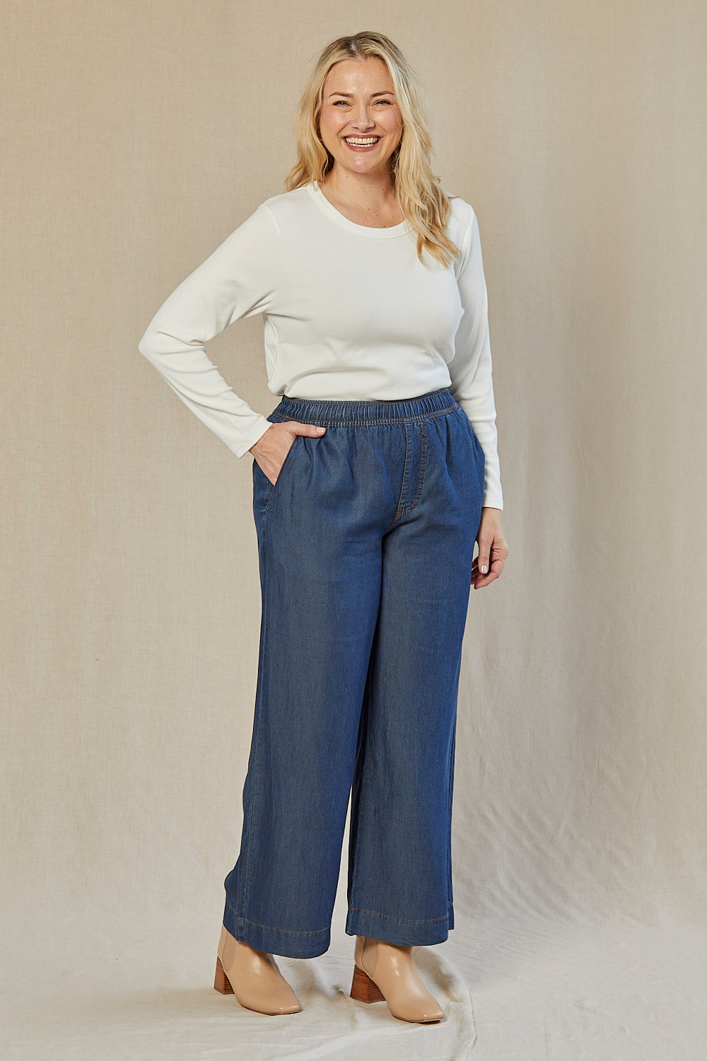 Discover the effortless charm of the Breezy Tencel Pant in mid blue by Adrift. Designed in the vibrant city of Brisbane, these pants encapsulate a perfect blend of comfort and style. With an elasticated waist, slipping into these pants is a breeze, ensuring a comfortable fit that effortlessly complements your shape.