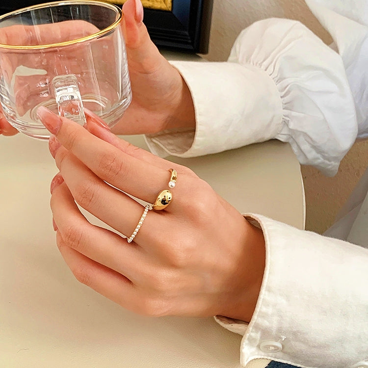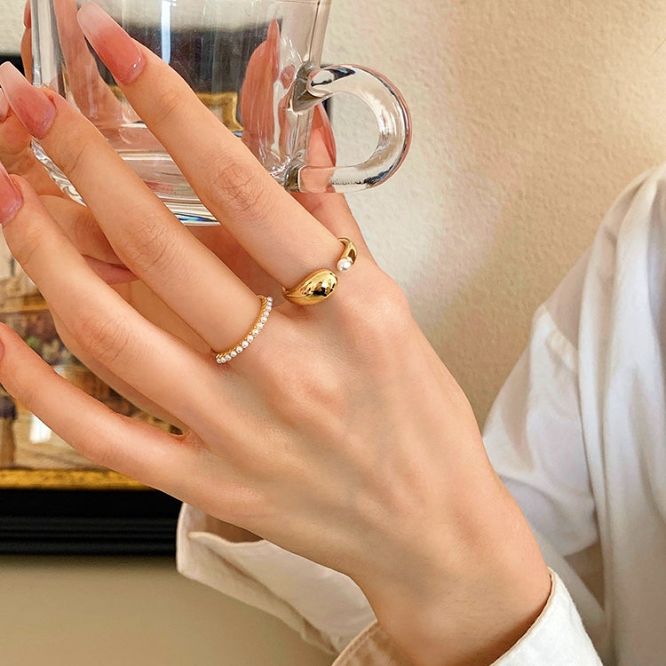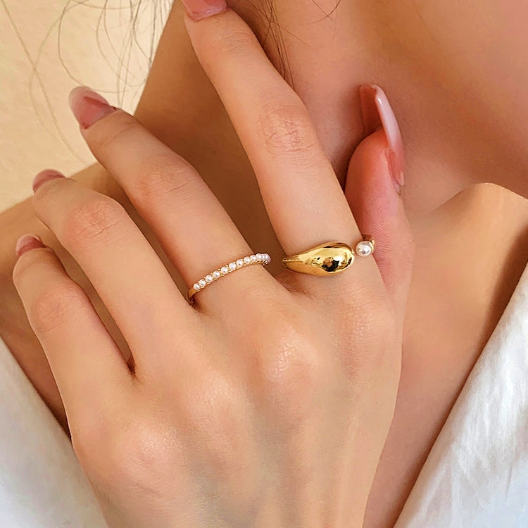 Gold Plated Artificial Pearl Two Piece Rings