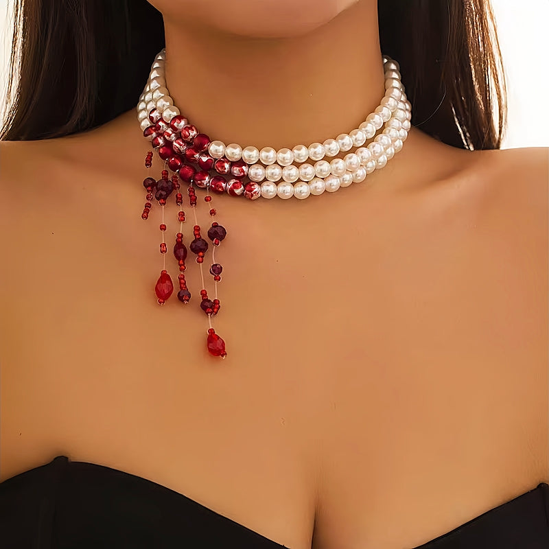 Halloween Blood Drop Pearl Tassel Clavicle Necklace