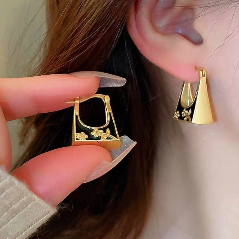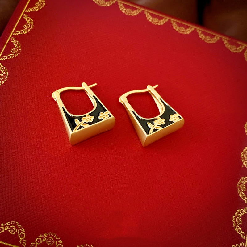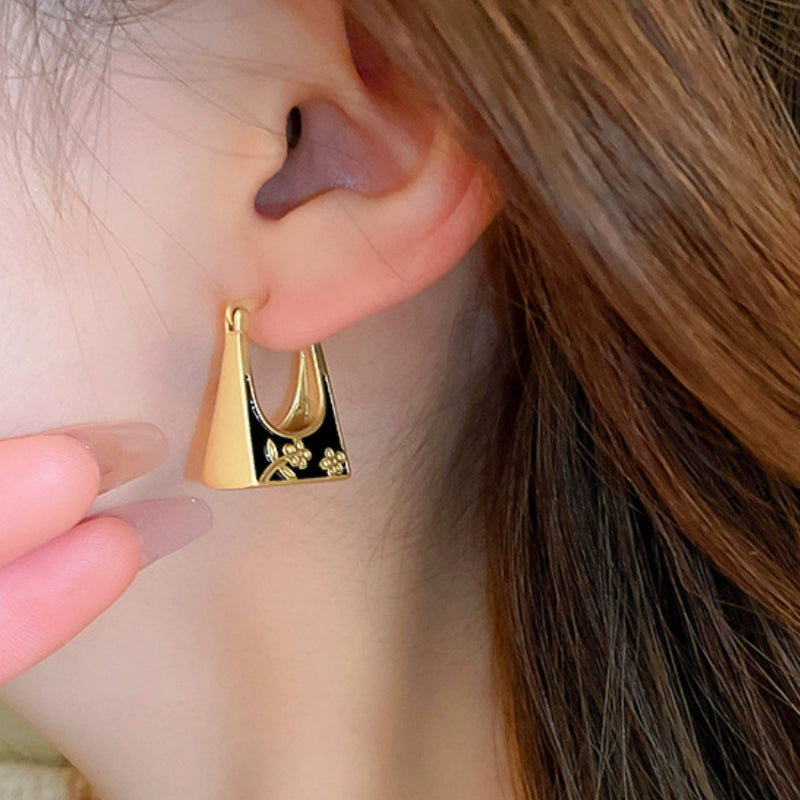 Silver Post 14K Gold-Plated Black Bag Flower Earrings