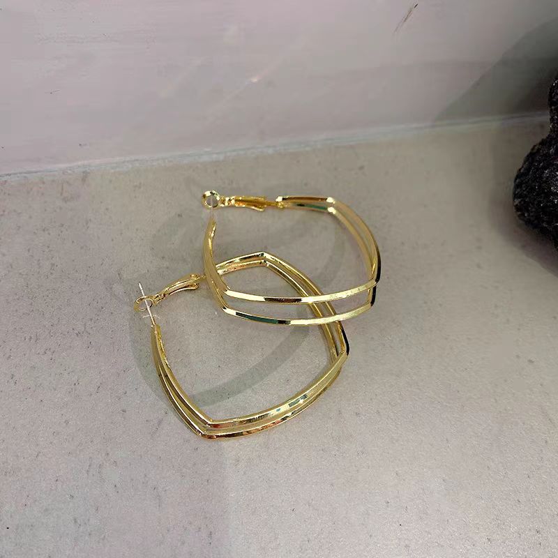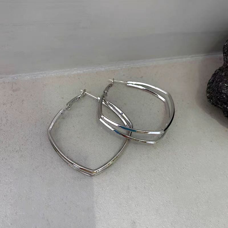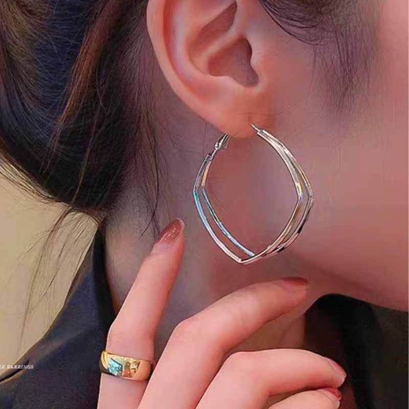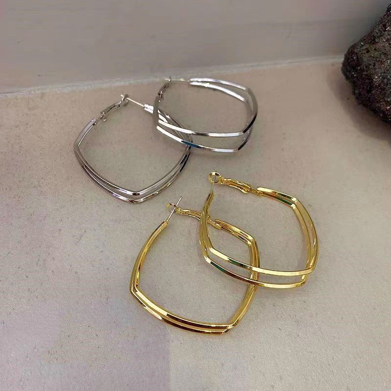 Silver Post 14K Gold-Plated Double Layer Geometric Earrings