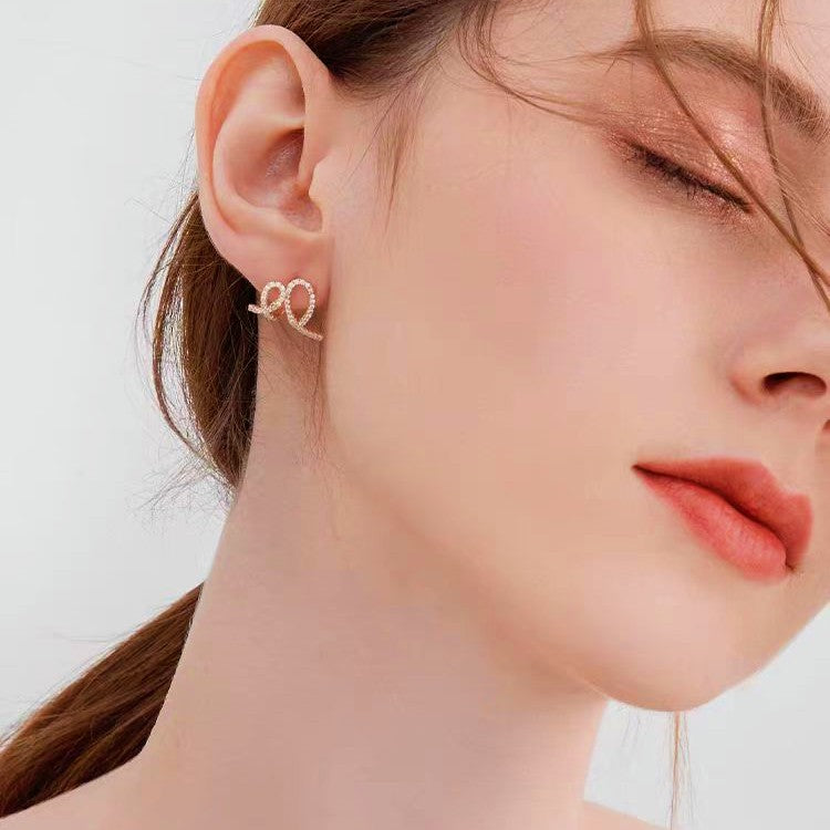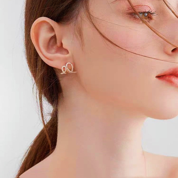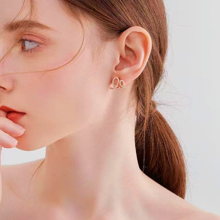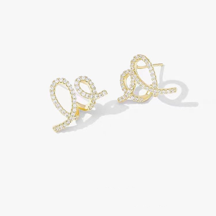 Silver Post 14K Gold Plated Zircon Sector Earrings