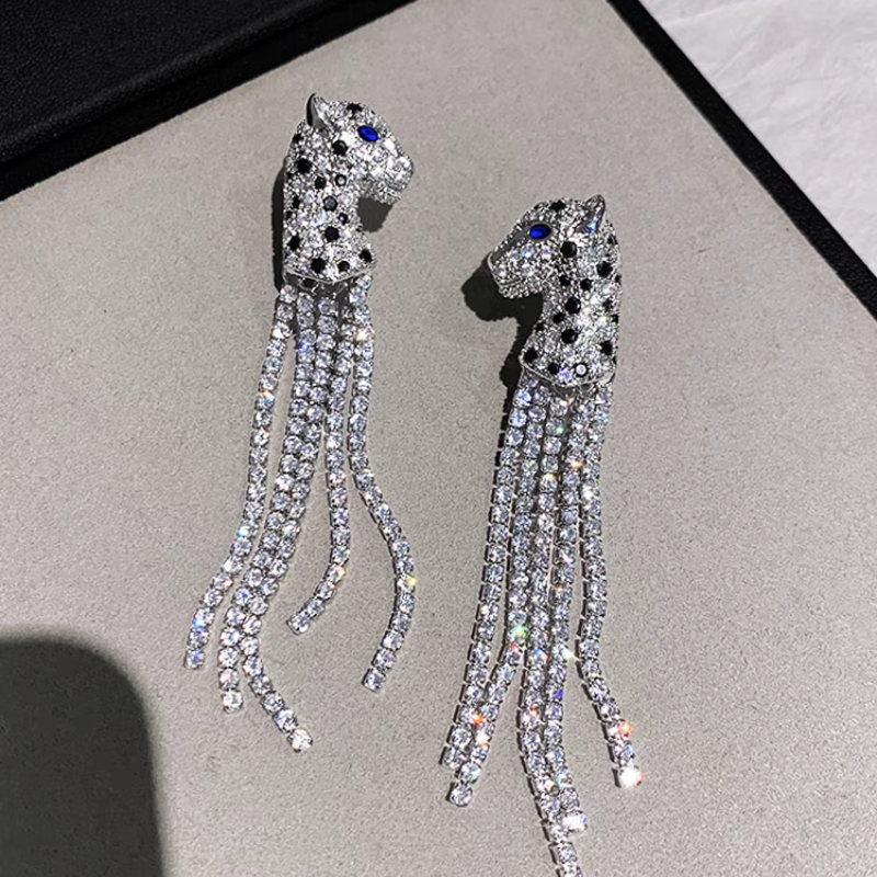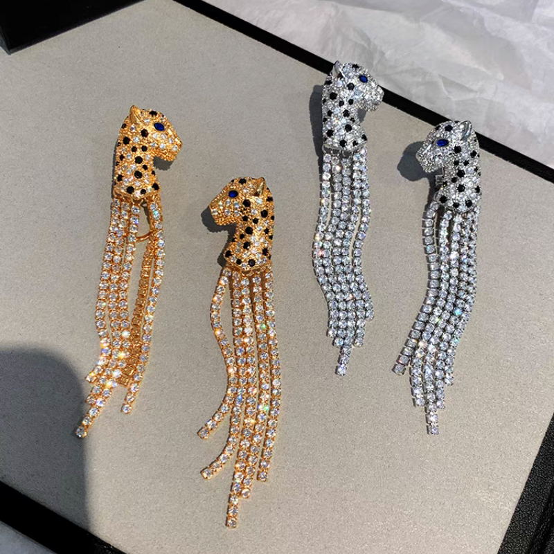 Silver Post 24K Gold-Plated Leopard Head Tassel Earrings