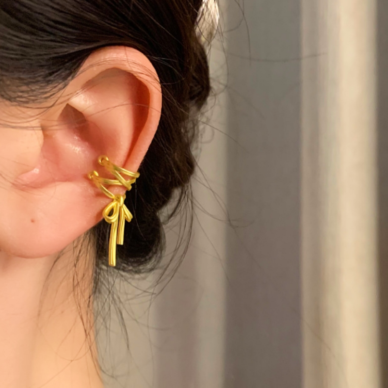 Silver Post Bow Ear Cuffs