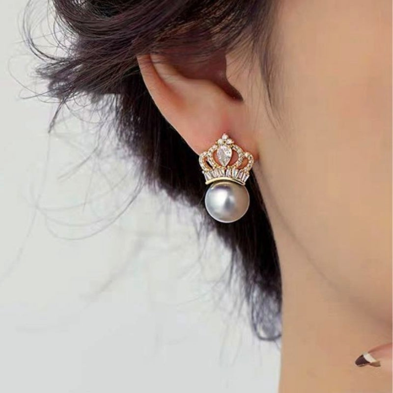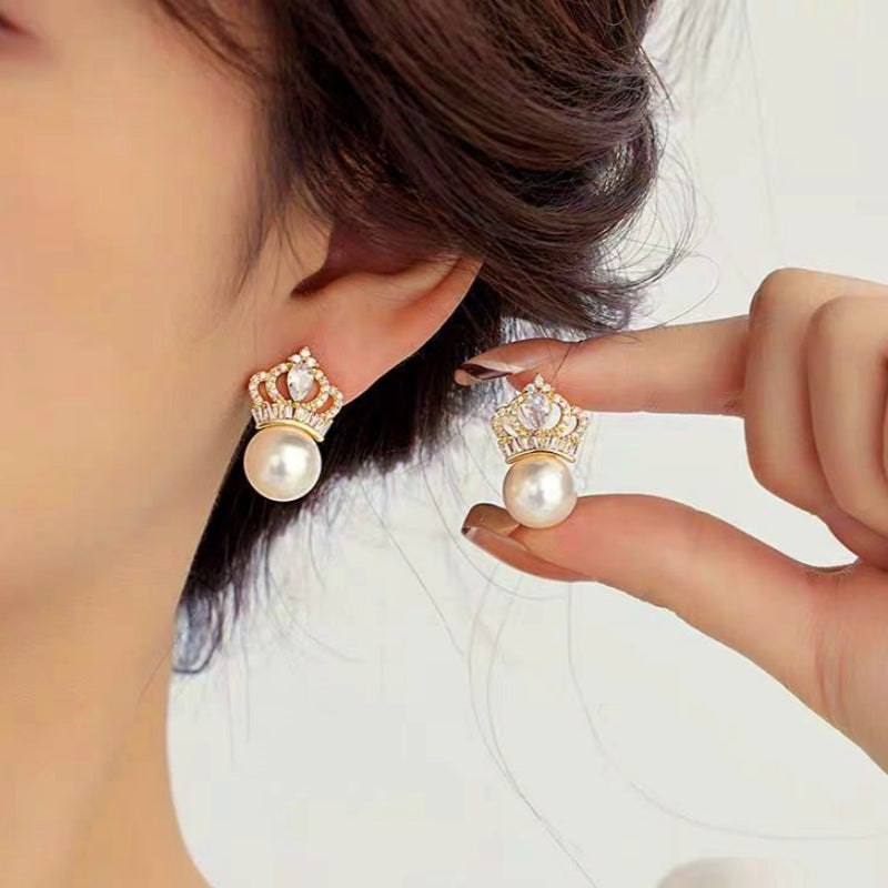 Silver Post Crown Pearl Earrings