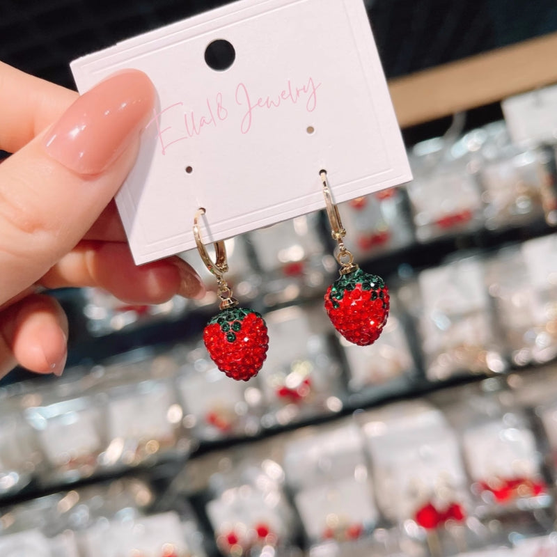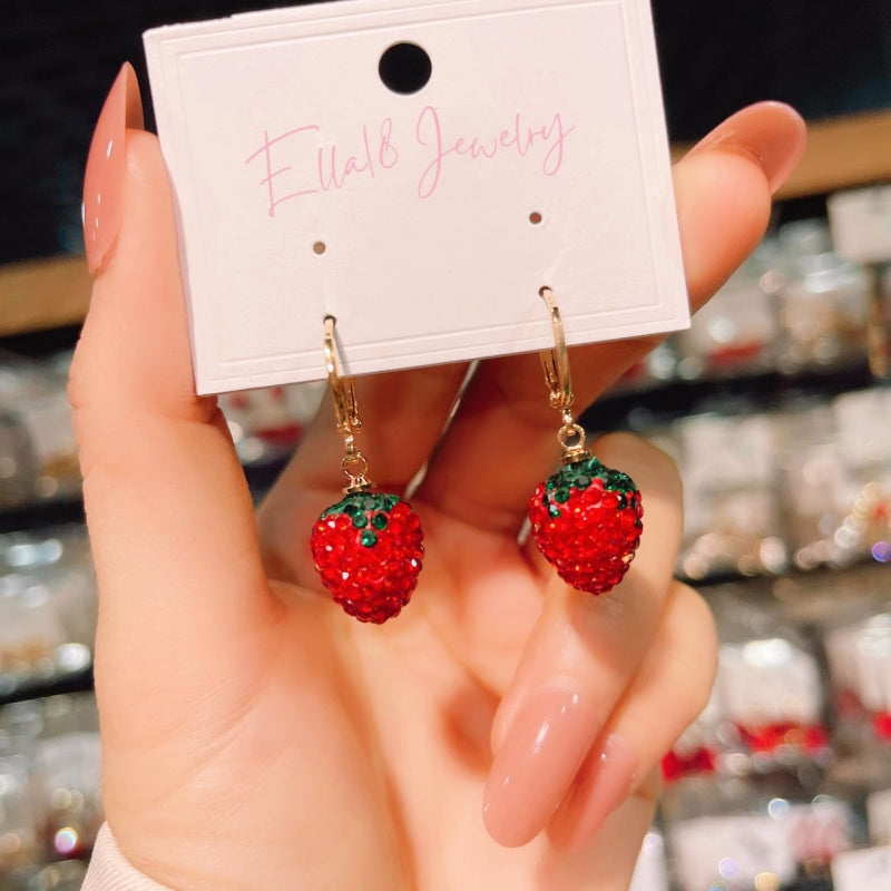 Silver Post Diamond Strawberry Earrings