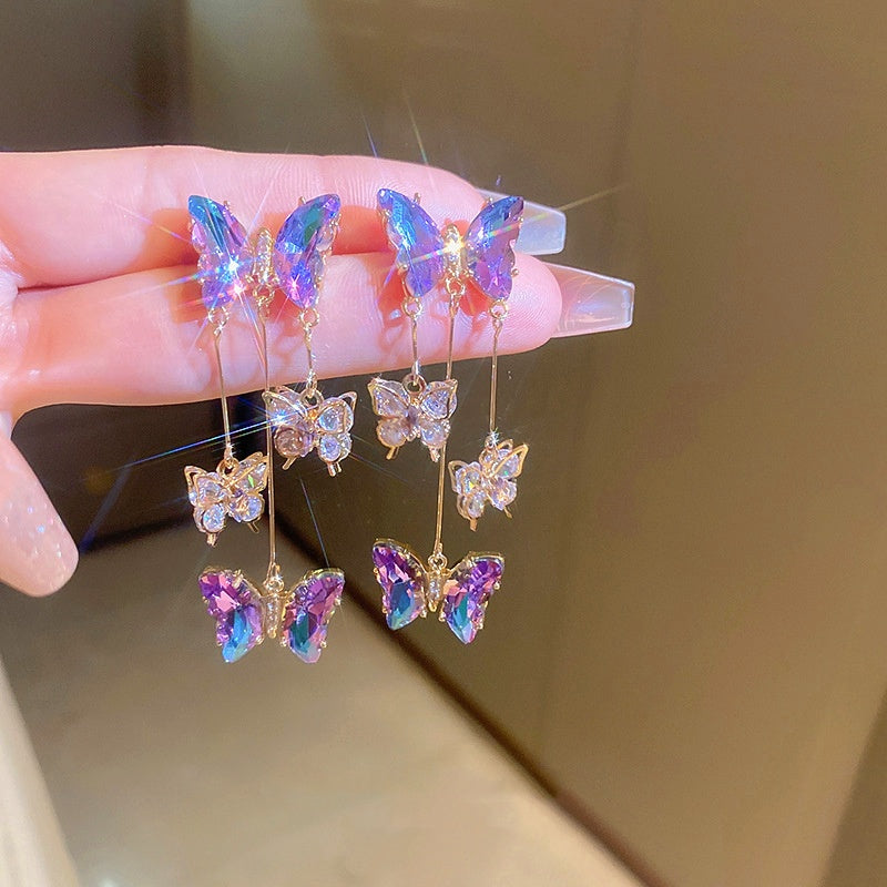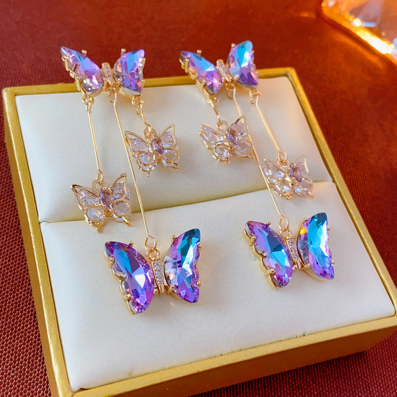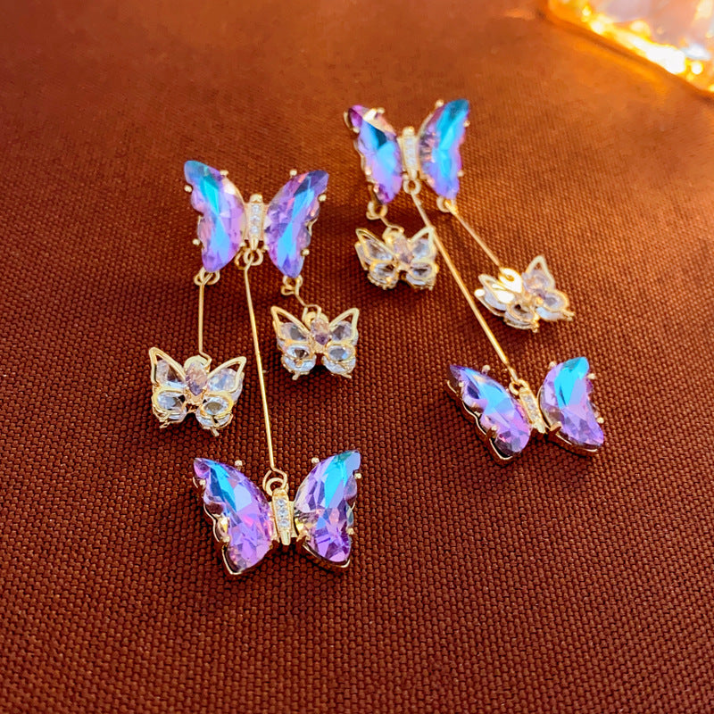 Silver Post Diamond Zircon Butterfly Earrings