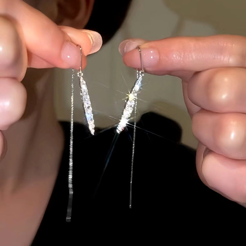 Silver Post Exquisite Simple Shiny Diamond Threader Earrings