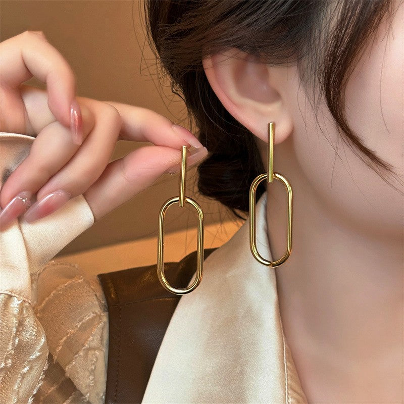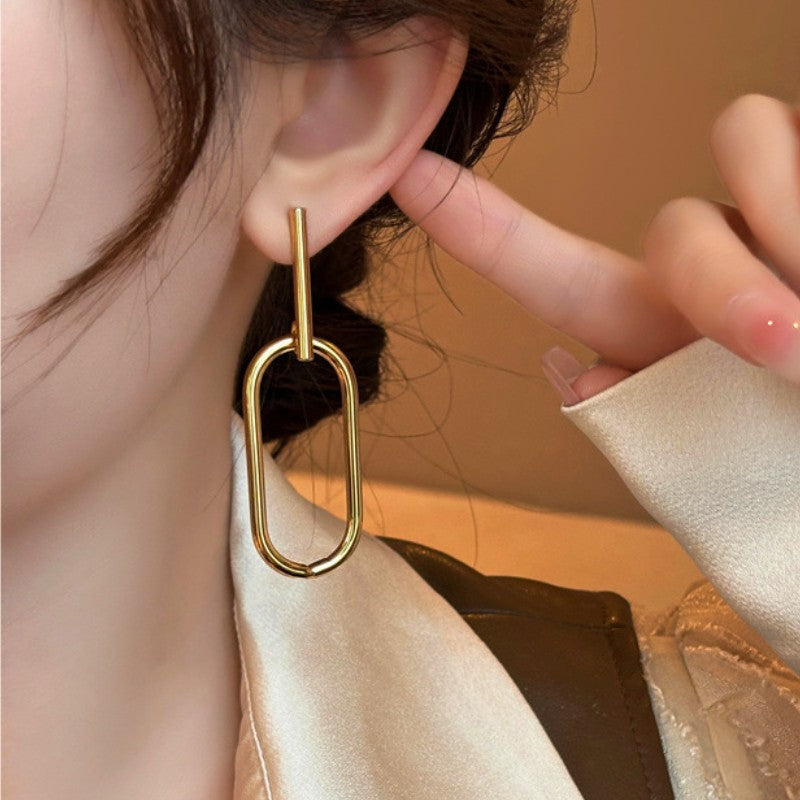 Silver Post Geometric Oval Earrings