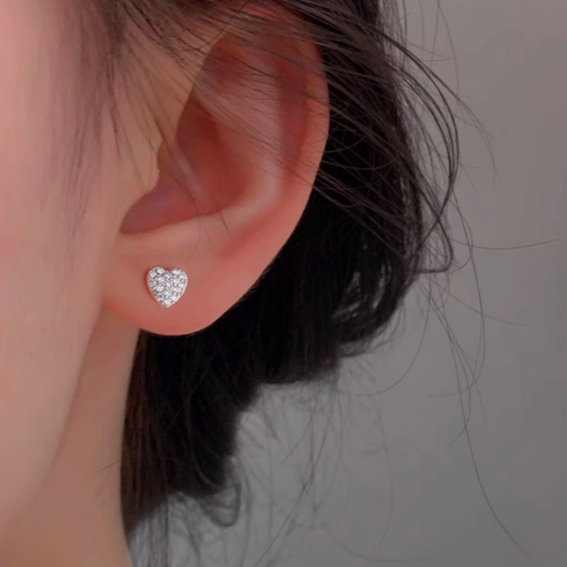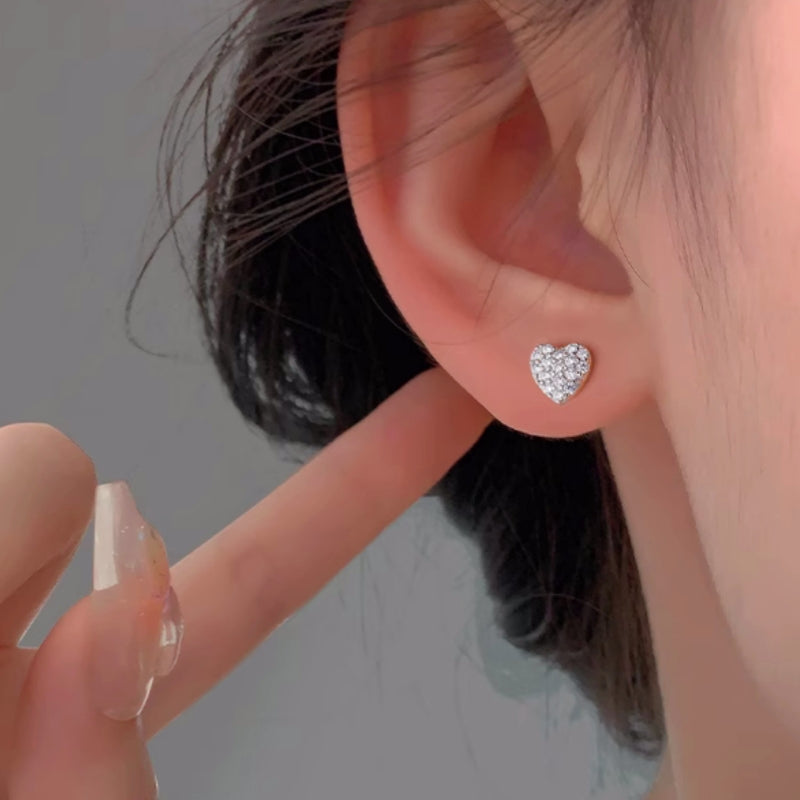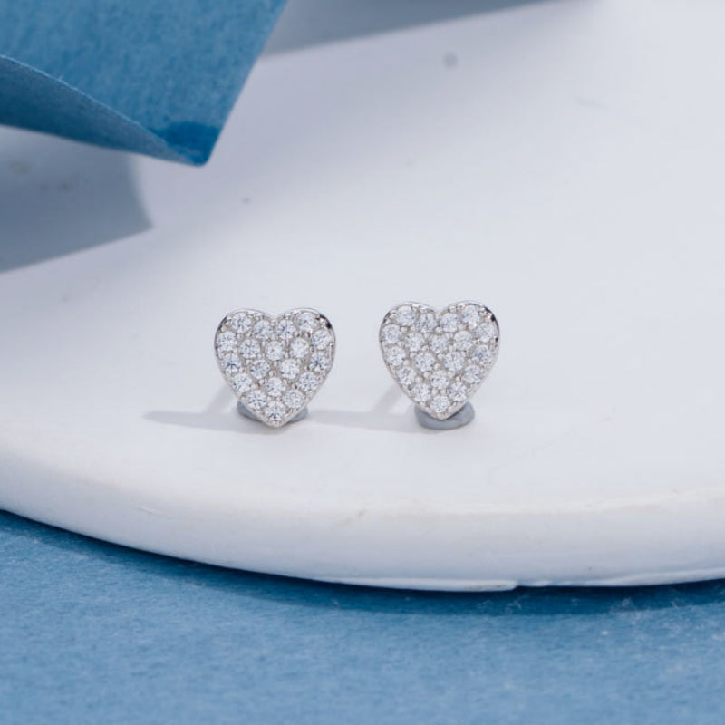 Silver Post Heart Zircon Stud Earrings
