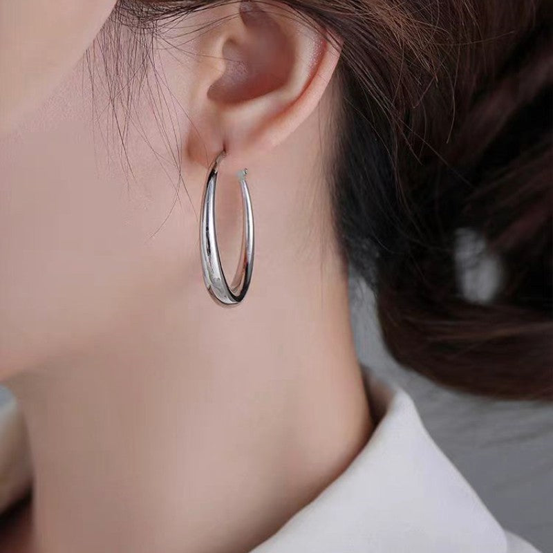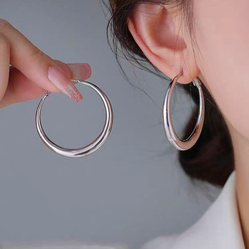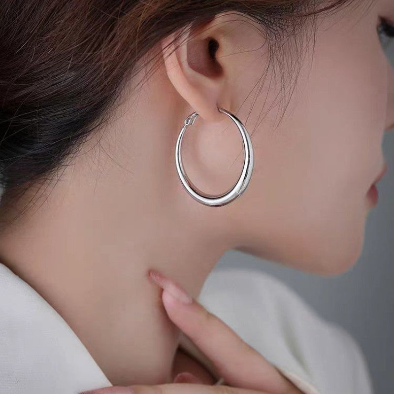 Silver Post Large Hoop Earrings