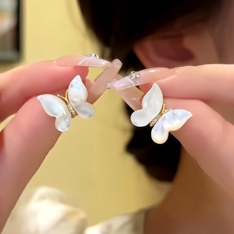 Silver Post Micro-Inlaid Mother-Of-Pearl Butterfly Stud Earrings