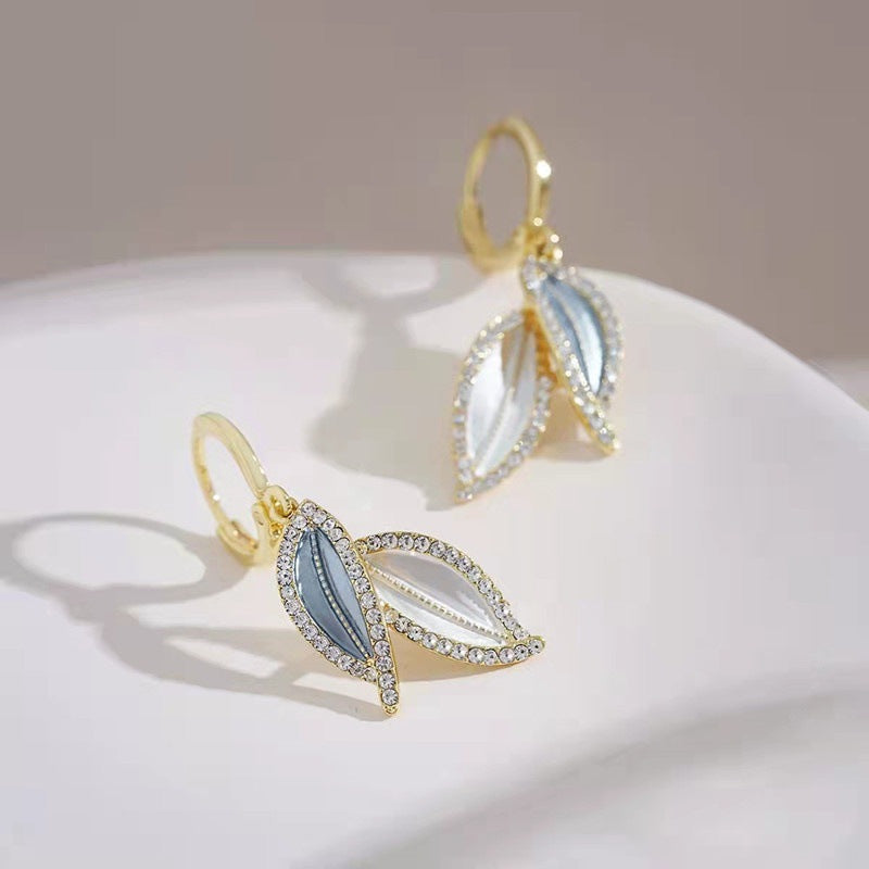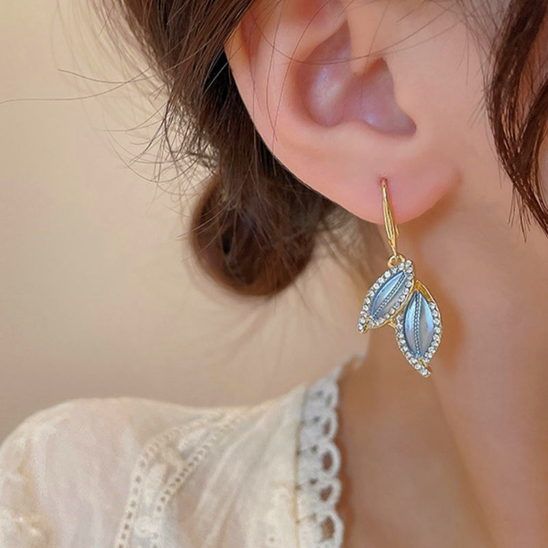 Silver Post Oil Drop Leaf Earrings