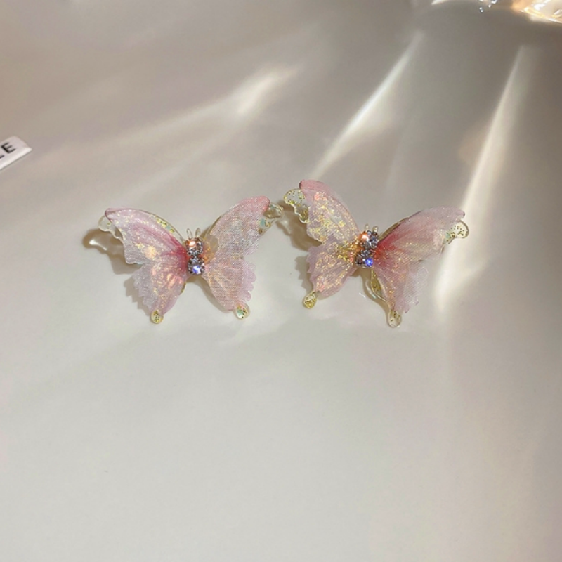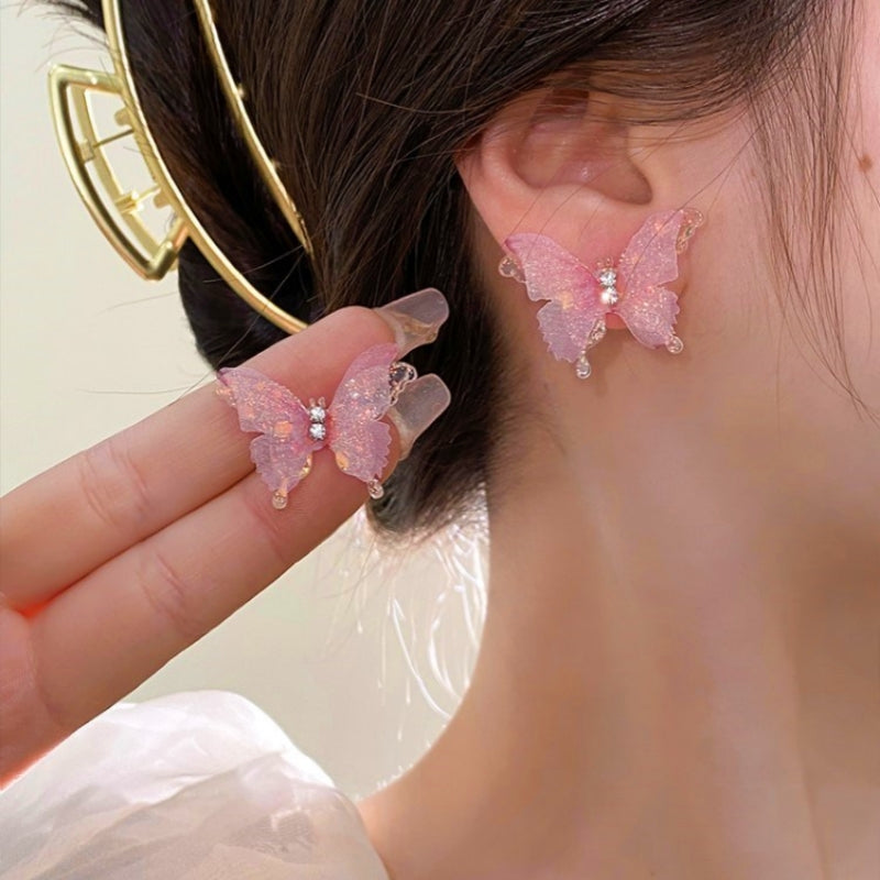 Silver Post Pink Butterfly Stud Earrings