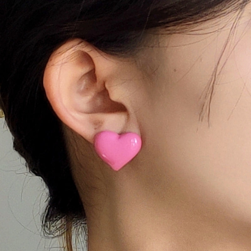 Silver Post Pink Heart Stud Earrings