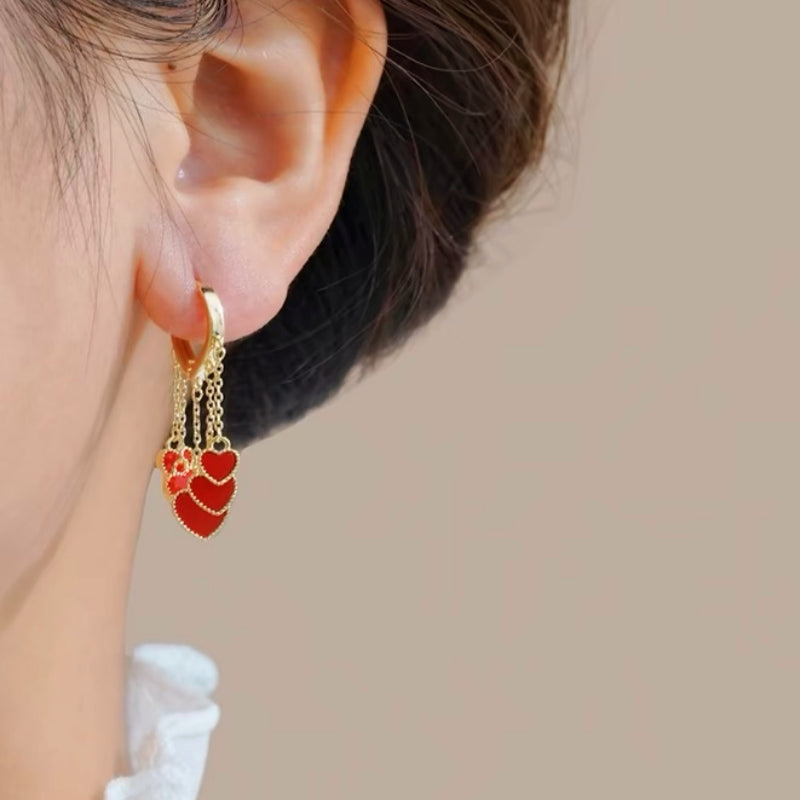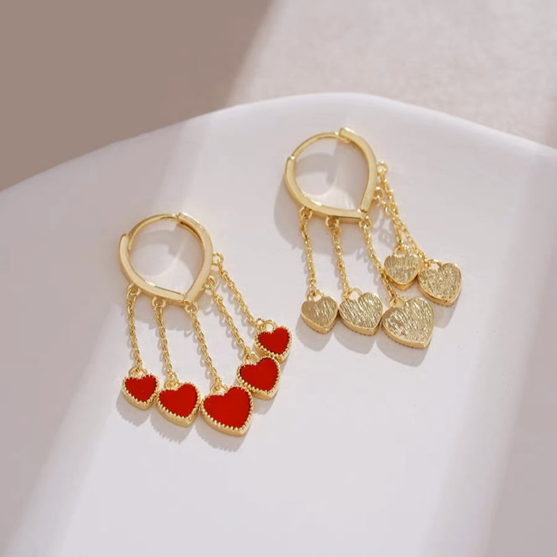 Silver Post Red Peach Heart Earrings