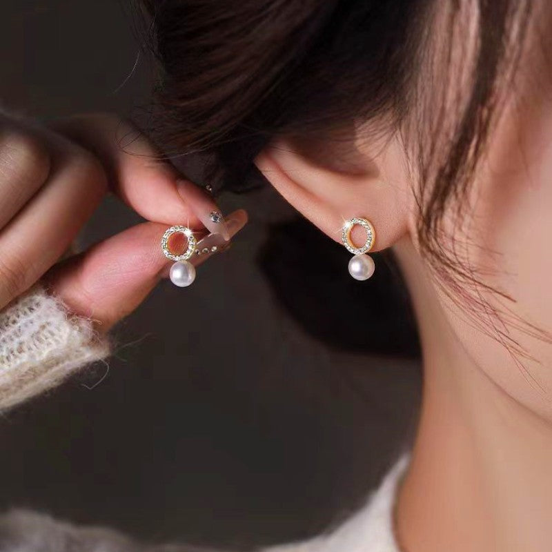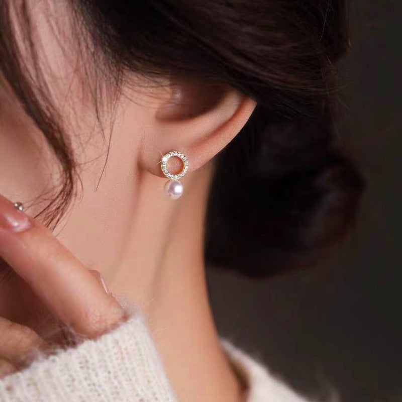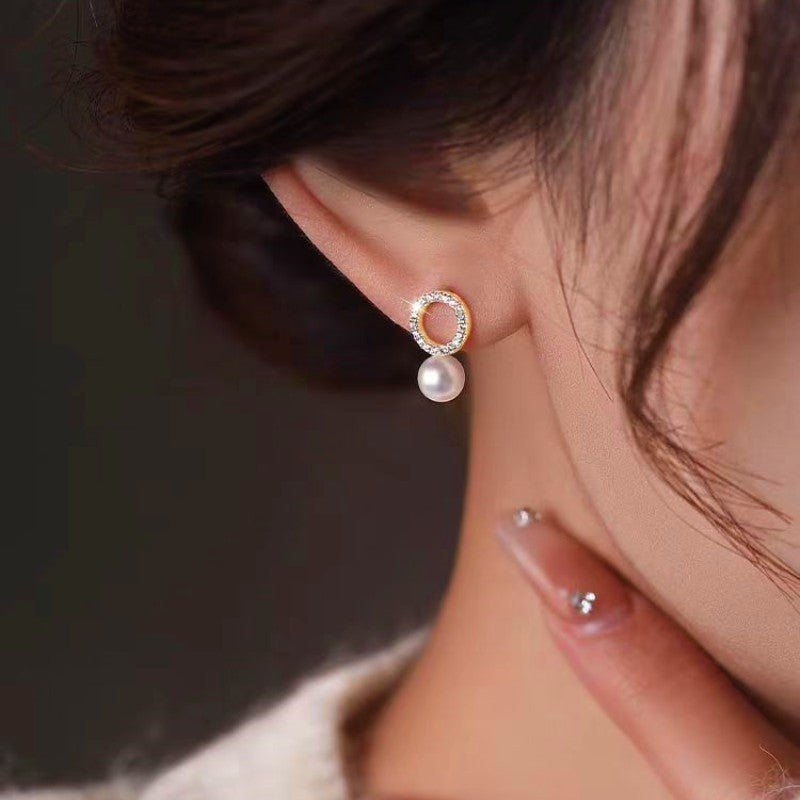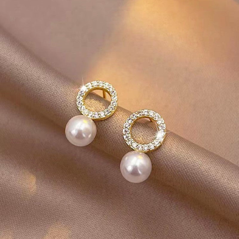 Silver Post Sparkling Diamond Pearl Stud Earrings