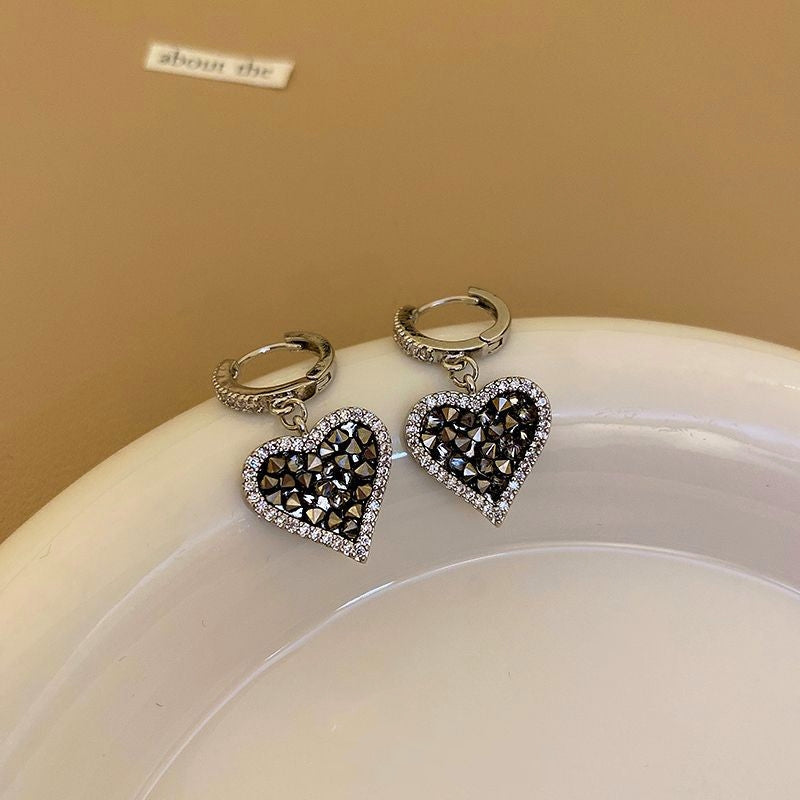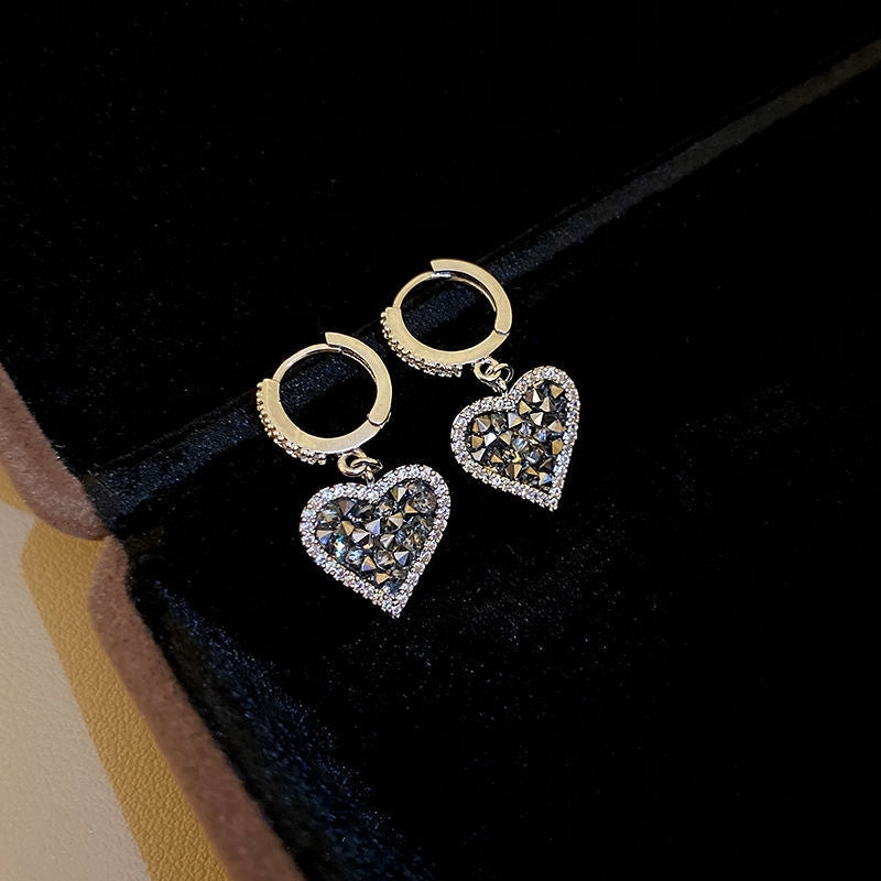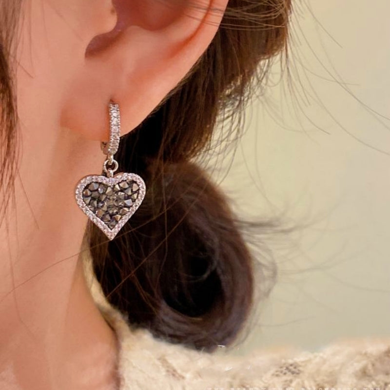 Silver Post Zircon And Diamond Heart-Design Earrings