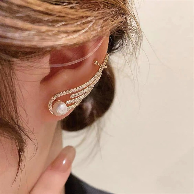Silver Post Zircon Angel Wing Earrings
