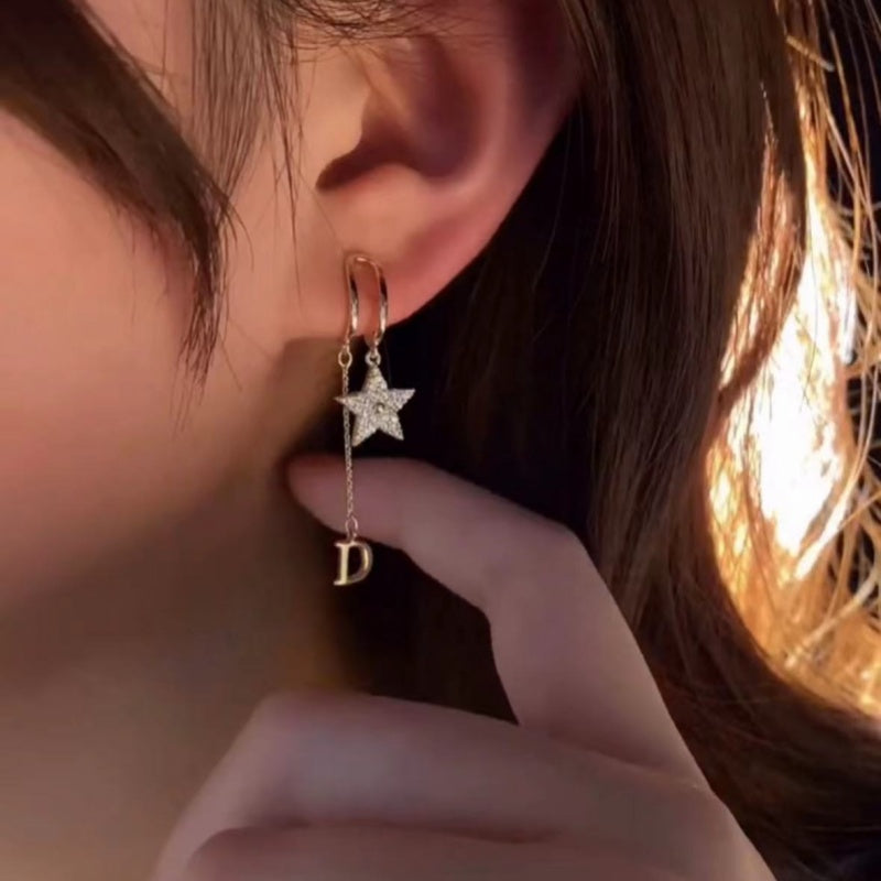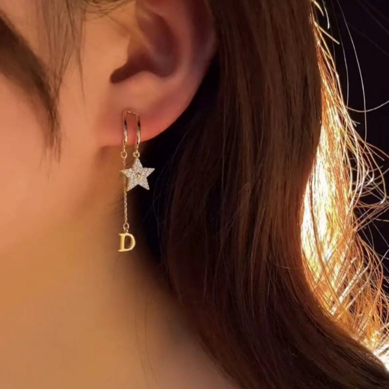 Silver Post Zircon D Letter Earrings