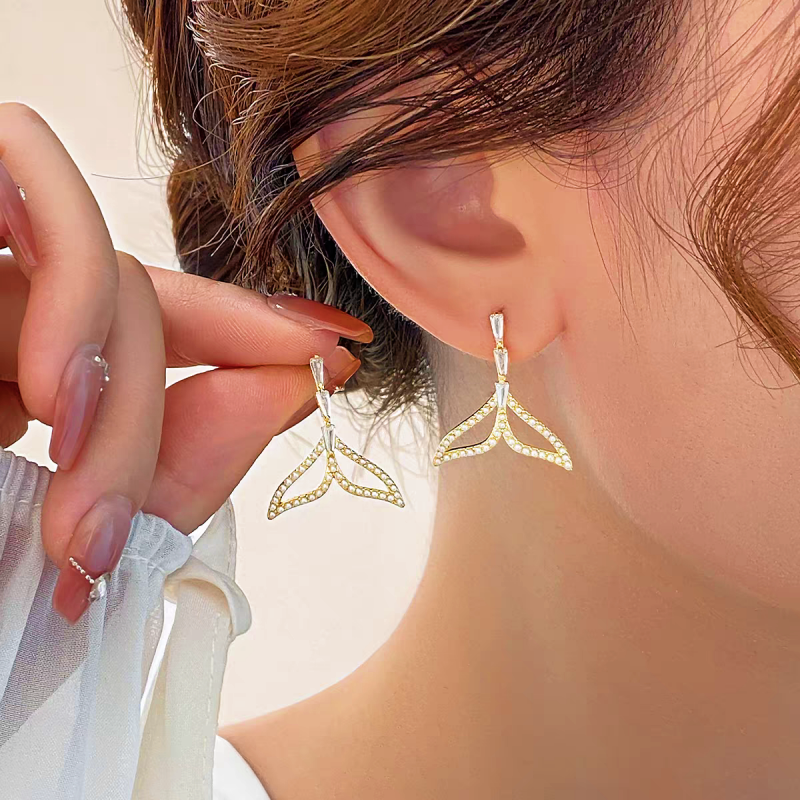 Silver Post Zircon Fishtail Earrings