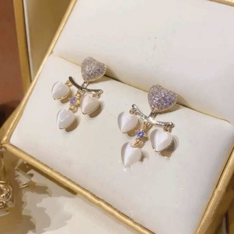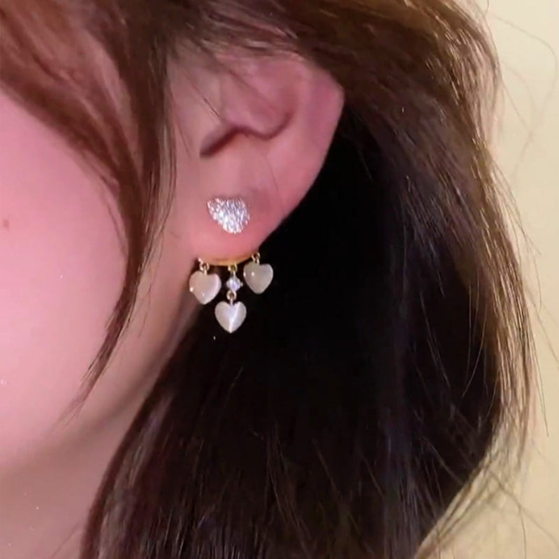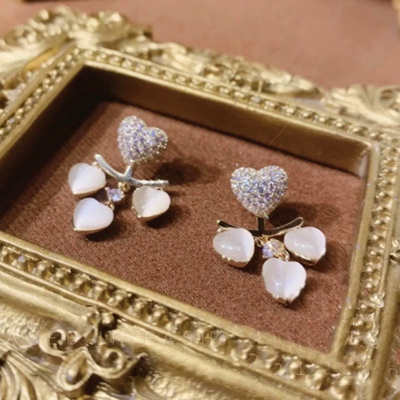 Silver Post Zircon Heart Opal Jacket Earrings