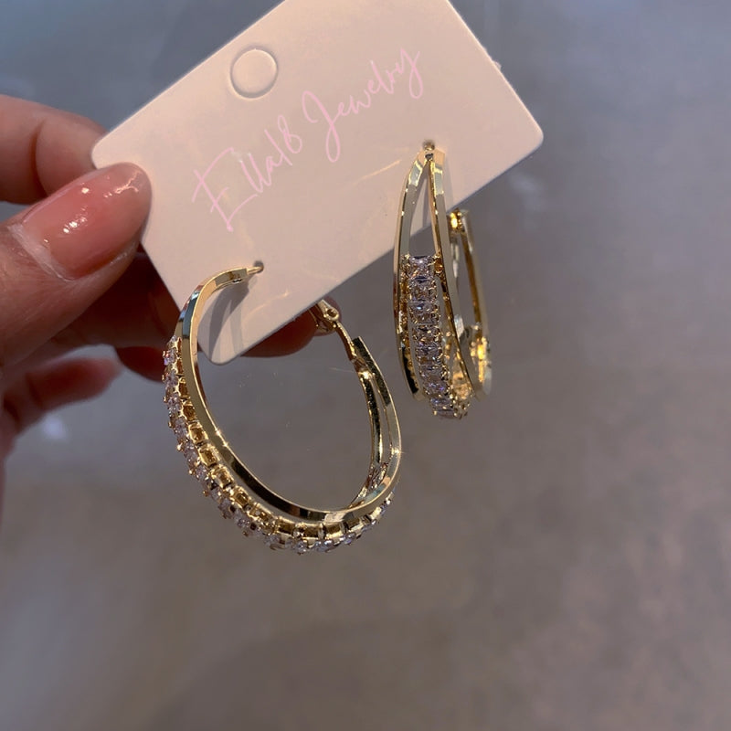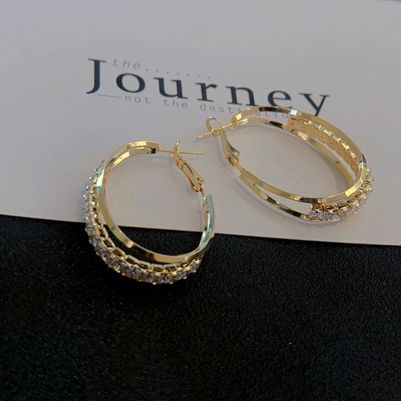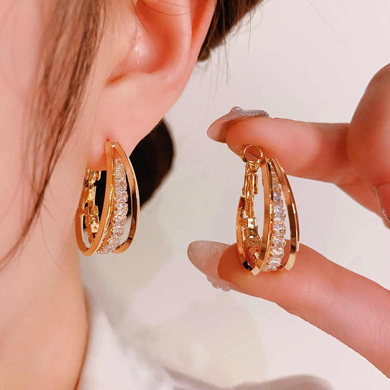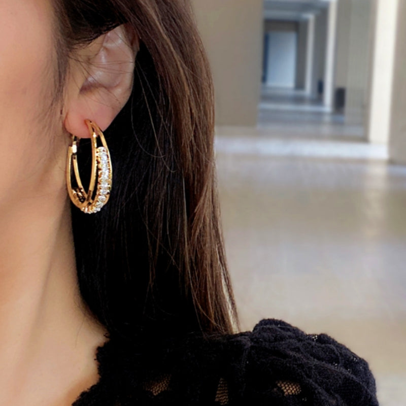 Silver Post Zircon Three-Layer Hoop Earrings