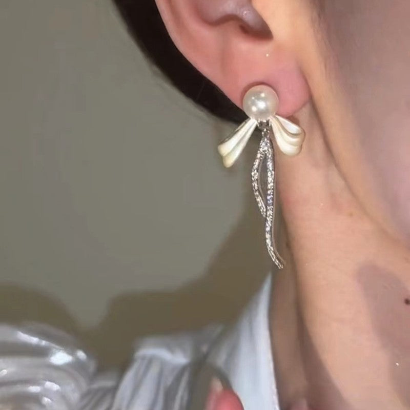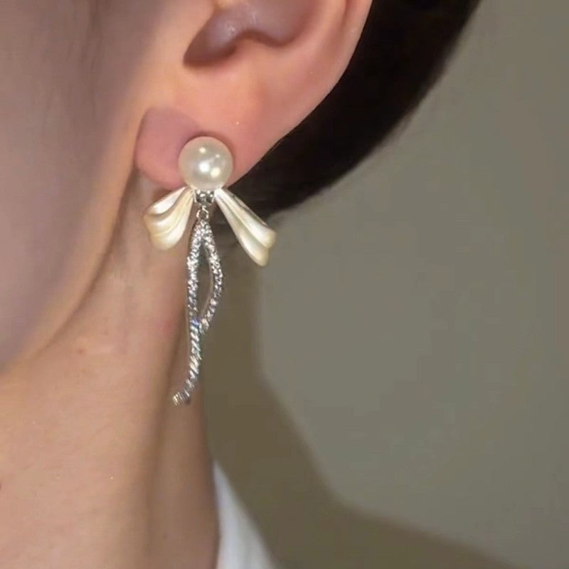 Sterling Silver 2024 Bling Bow Pearl Earrings