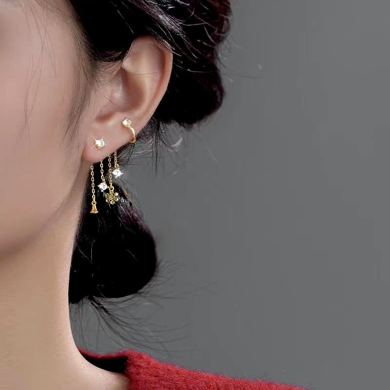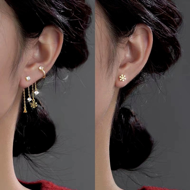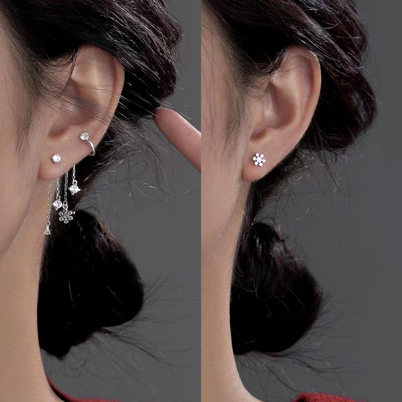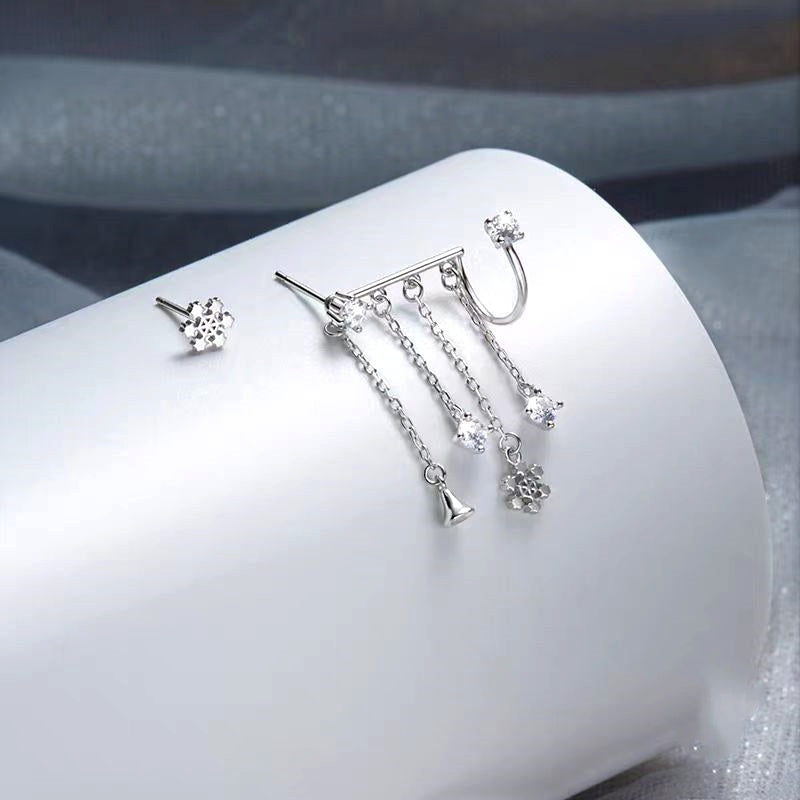 Sterling Silver Asymmetrical Sweet Snowflake Earrings