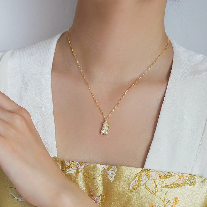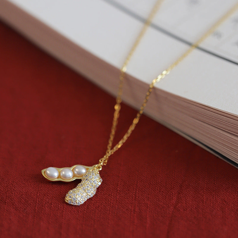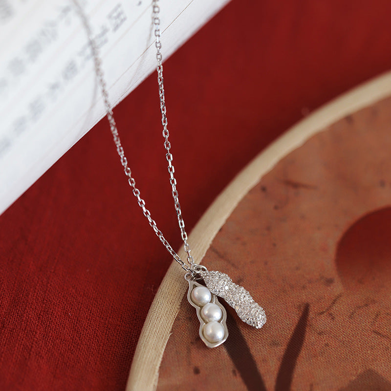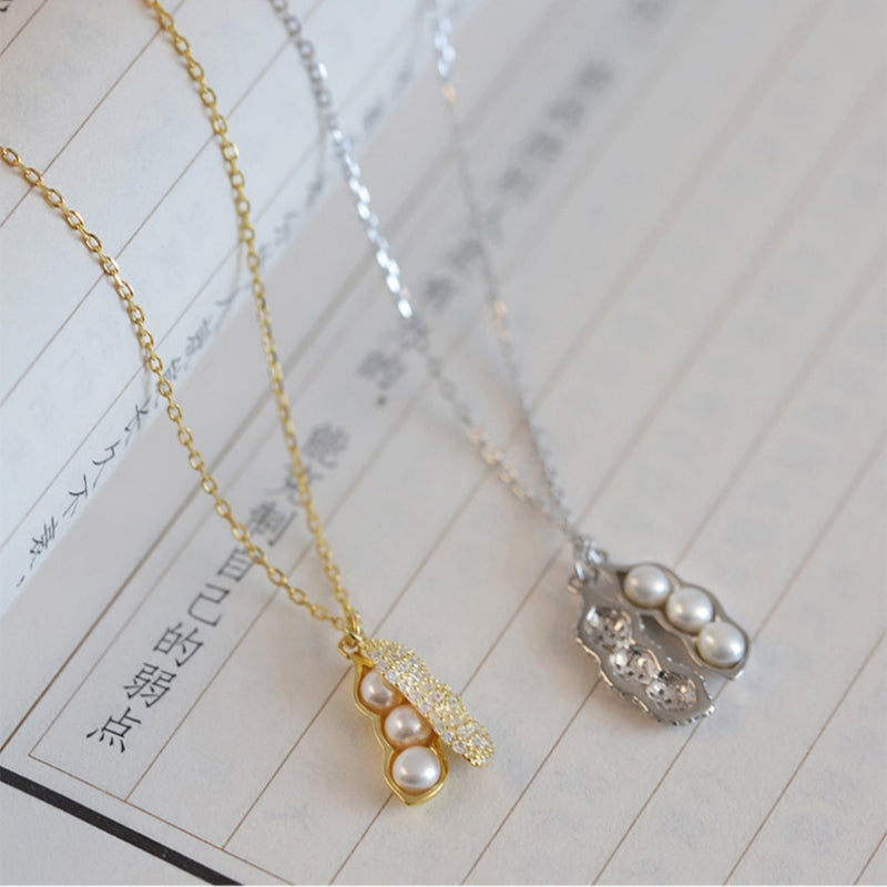 Sterling Silver Bean Pearl Clavicle Chain Necklaces