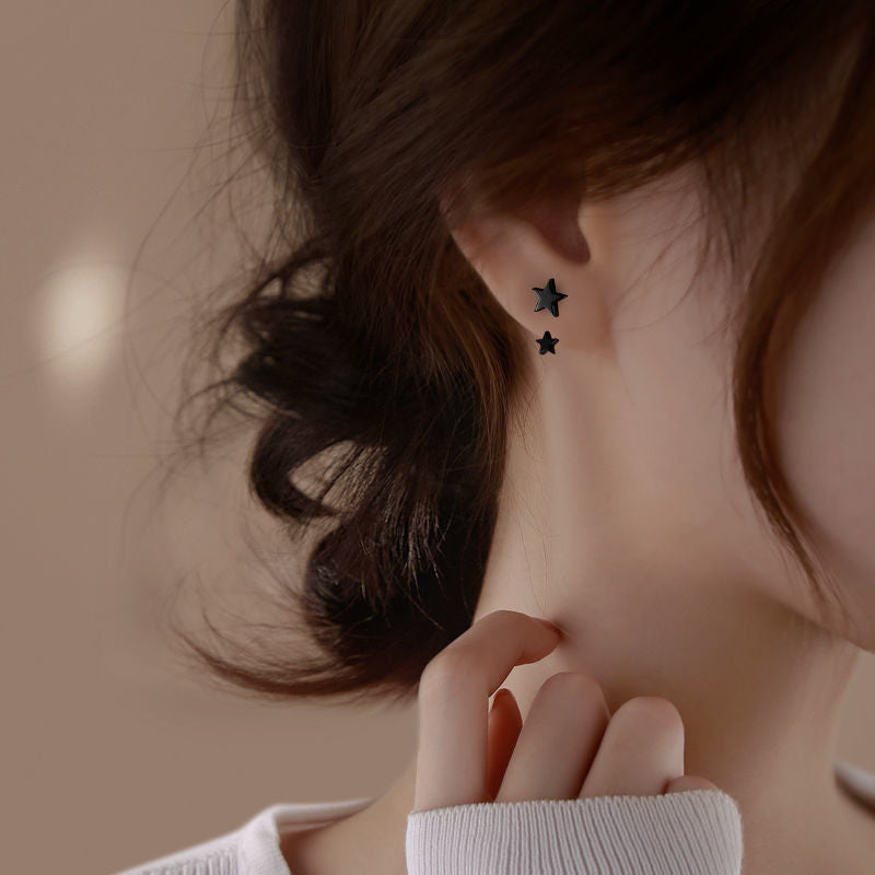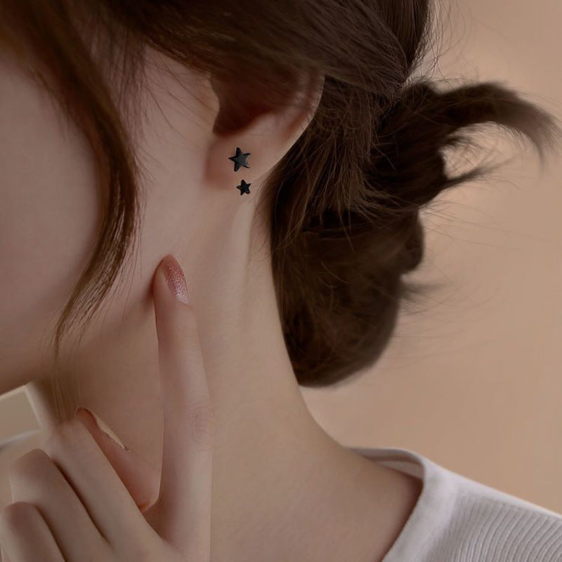 Sterling Silver Black Star Stud Earrings