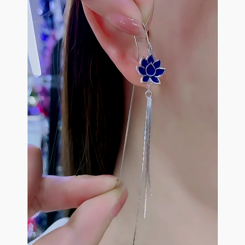 Sterling Silver Blue Lotus Tassel Threader Earrings