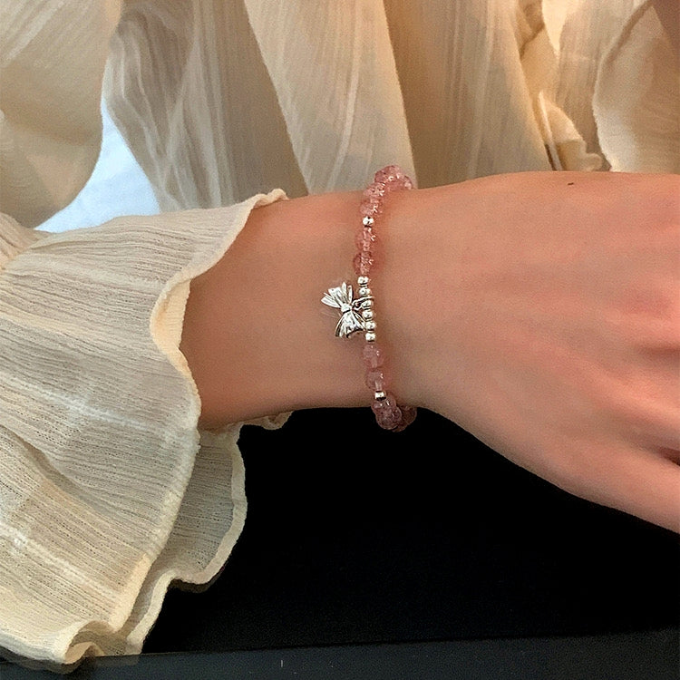 Sterling Silver Bow Strawberry Crystal Beaded Bracelets