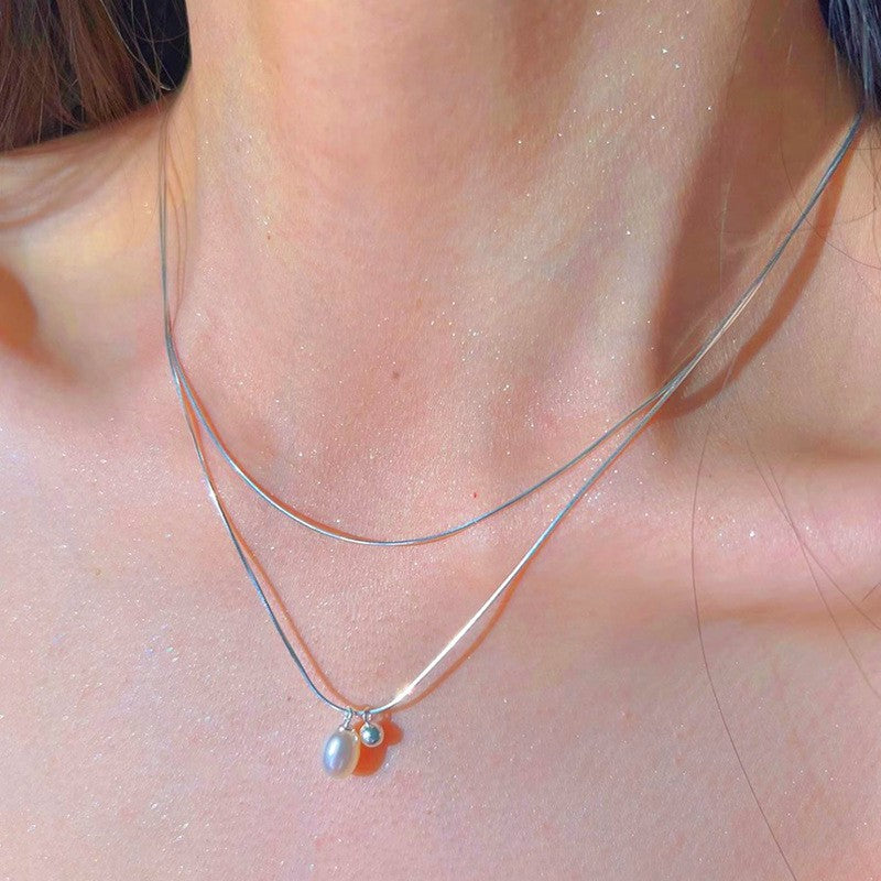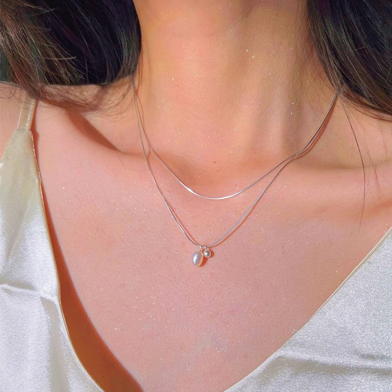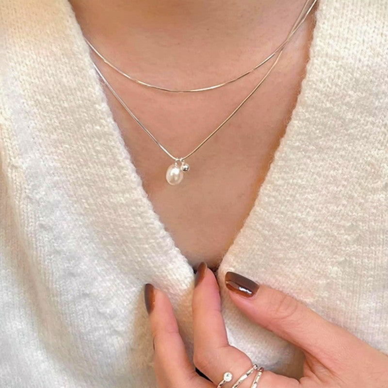 Sterling Silver Breathtaking Double Layer Artificial Pearl Necklaces