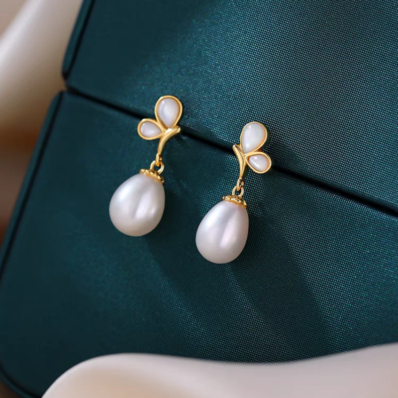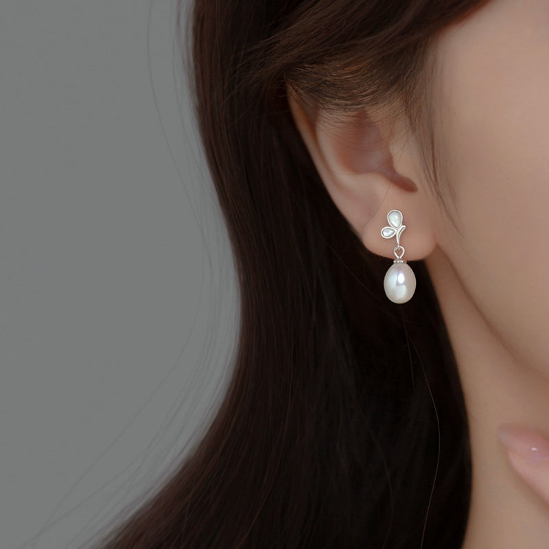 Sterling Silver Butterfly Pearl Earrings