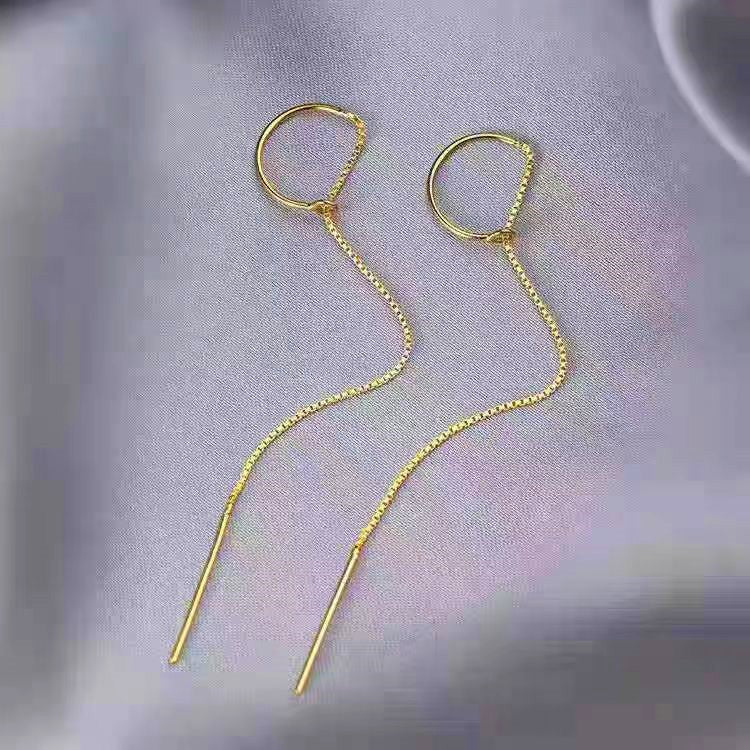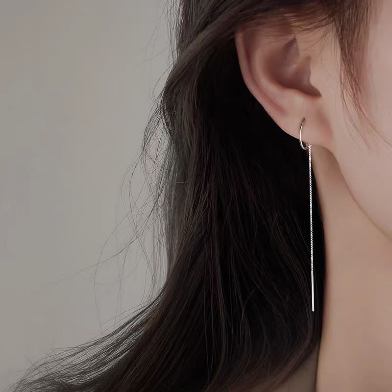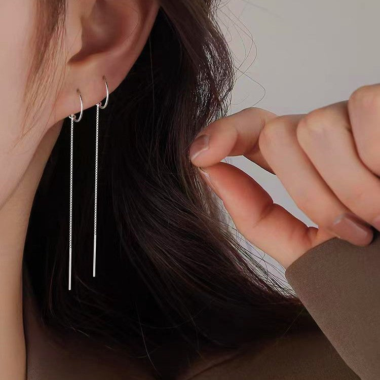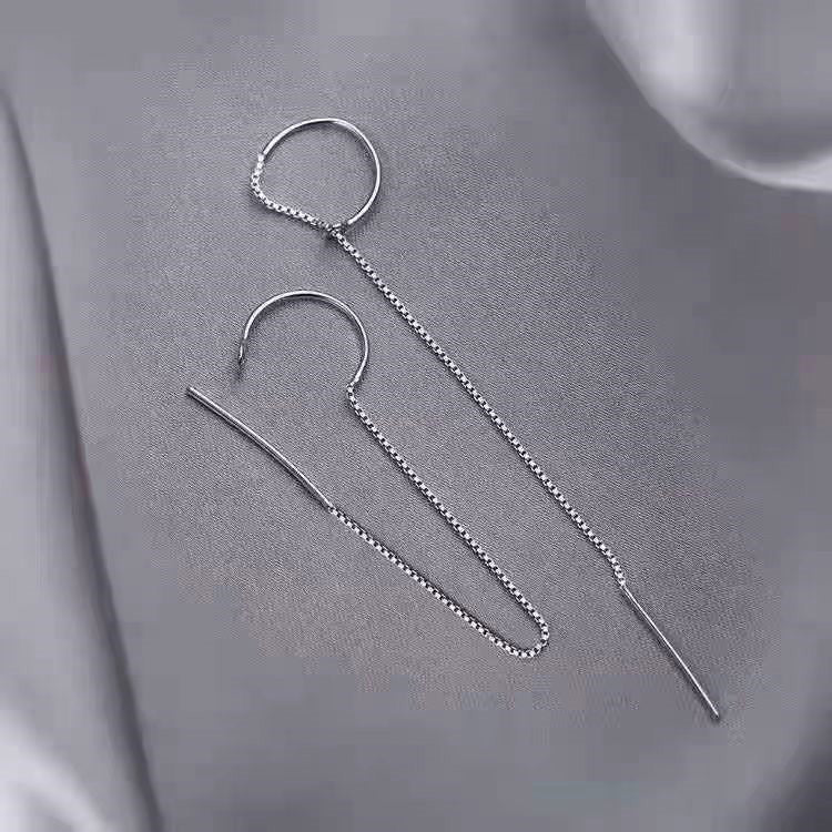 Sterling Silver C-Shaped Chain Tassel Threader Earrings