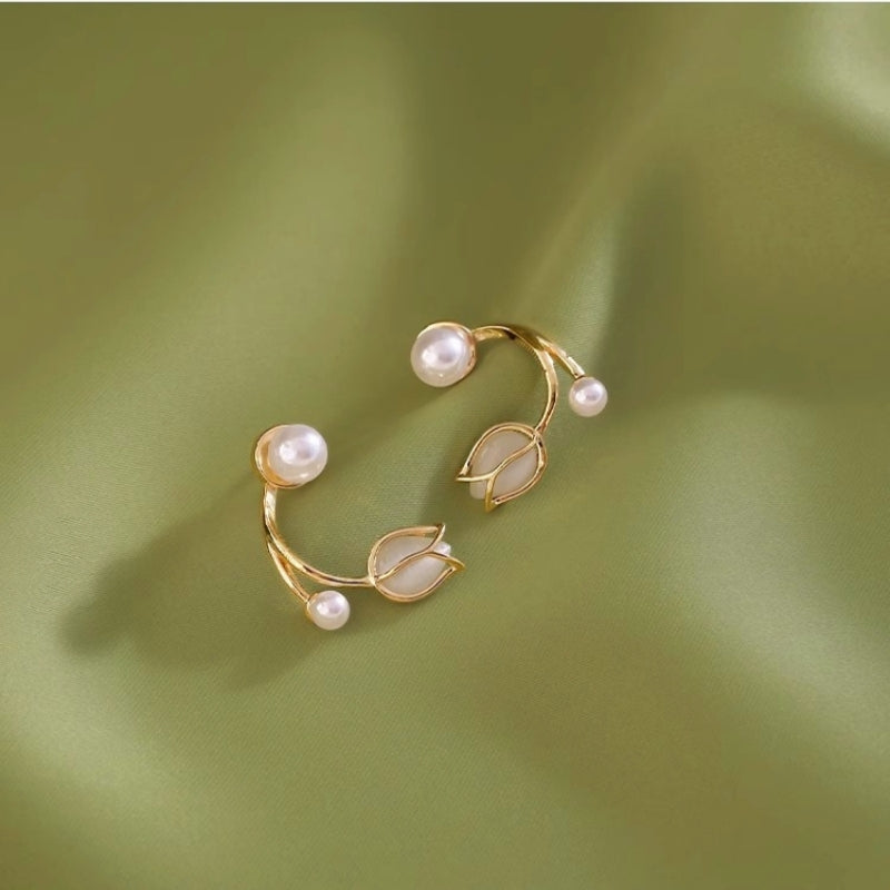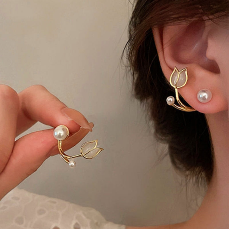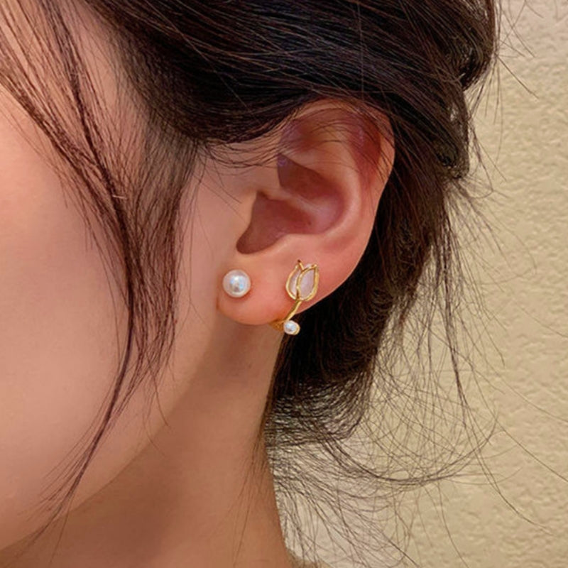 Sterling Silver Cat Eye Pearl Flower Earrings