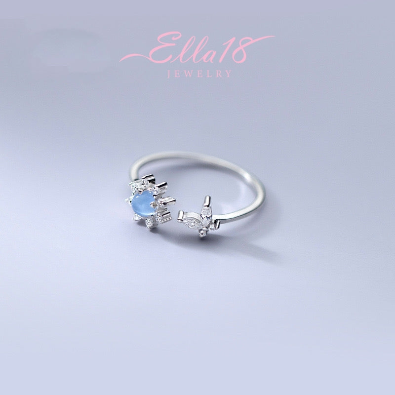Sterling Silver Cat's Eye Diamond Butterfly Sunflower Rings