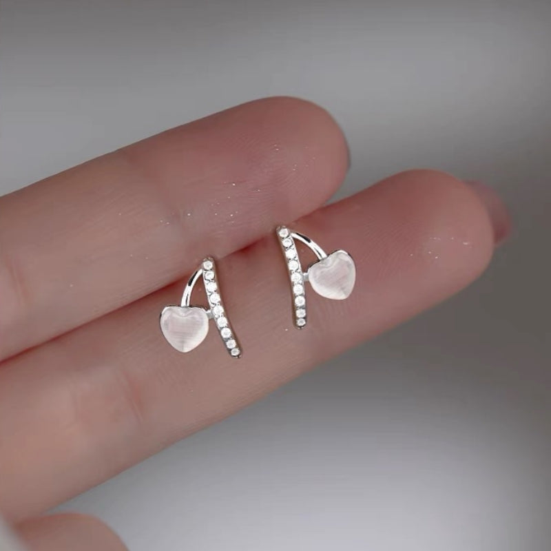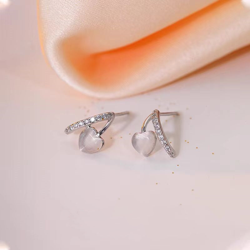 Sterling Silver Cat's Eye Heart Stud Earrings