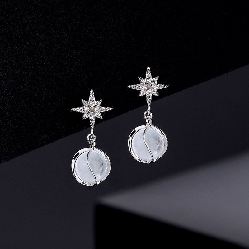 Sterling Silver Cat's Eye Stone Zircon Eight-Pointed Star Earrings