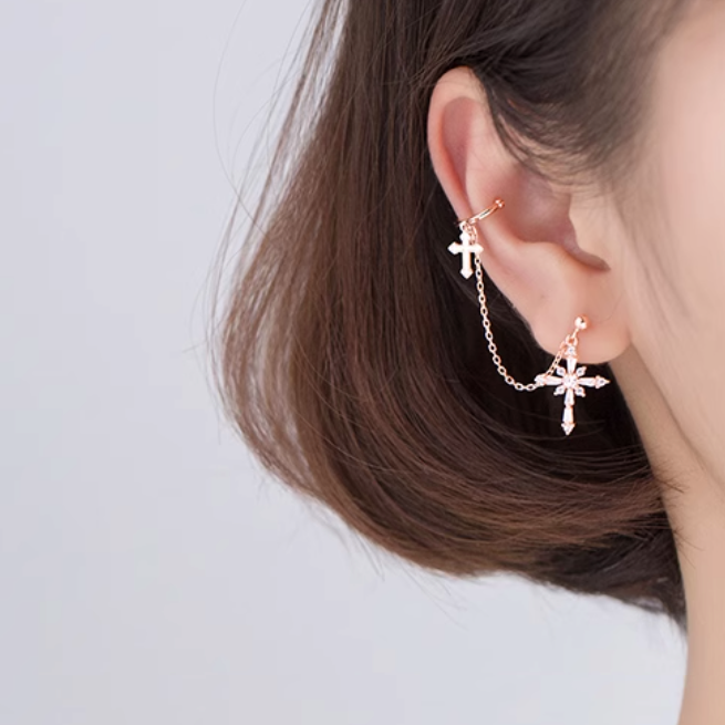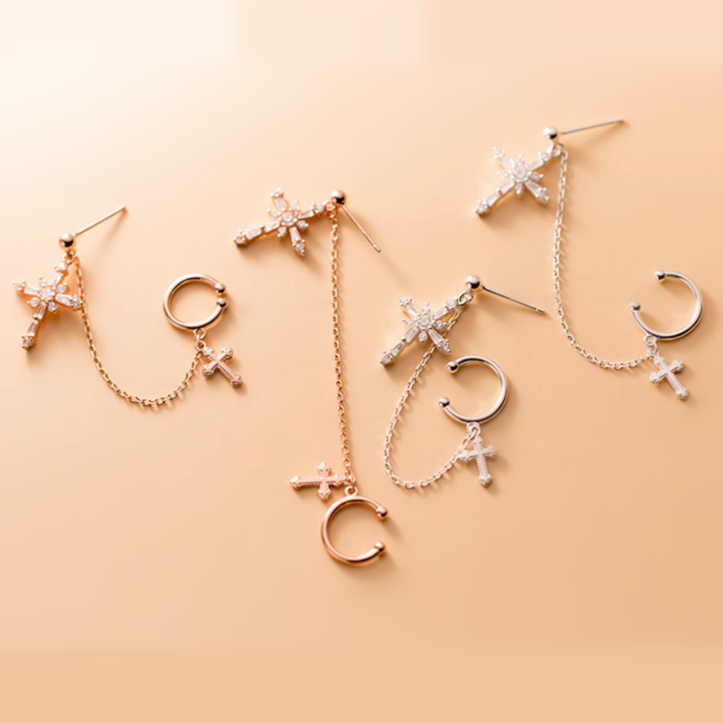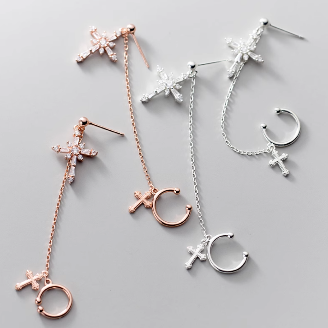 Sterling Silver Cross Ear Cuffs(1 Pair)