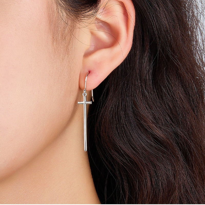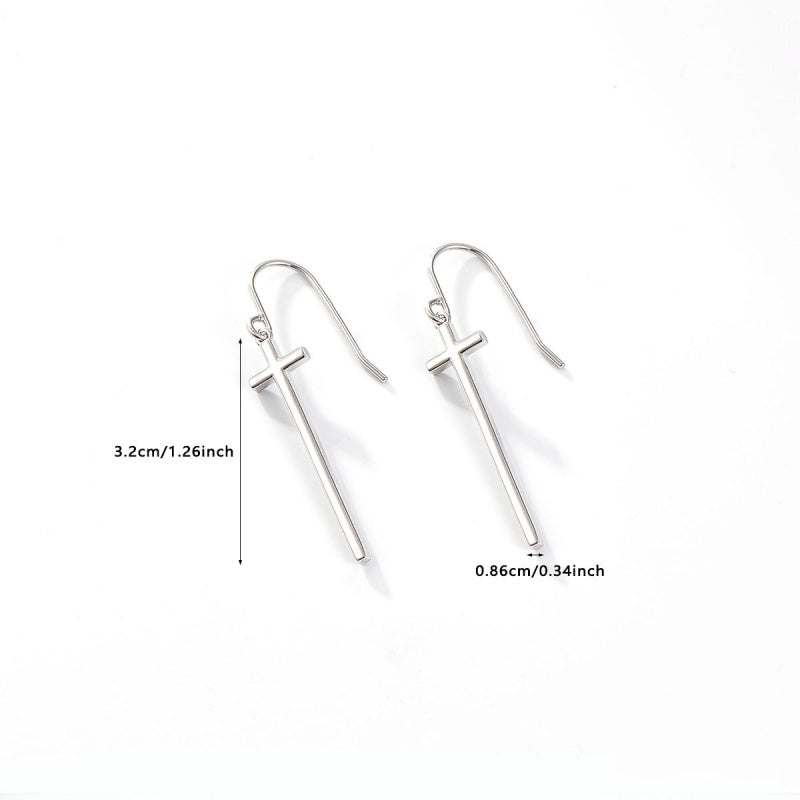Sterling Silver Cross Ear Hook Earrings